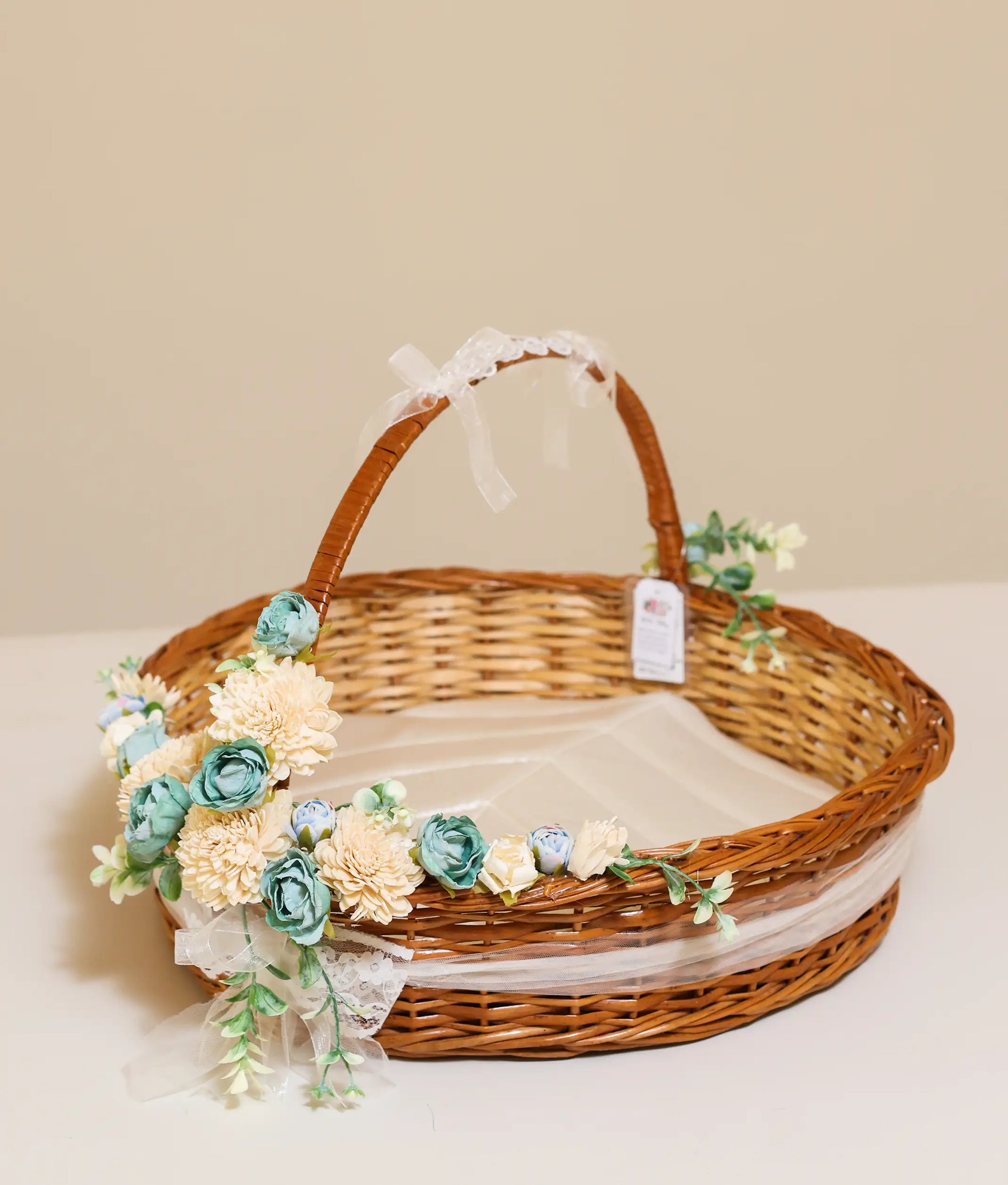 Off-white And Peacock-Blue Flower Baptism Basket For Your Baby Christening [Ready To Ship:BX22]