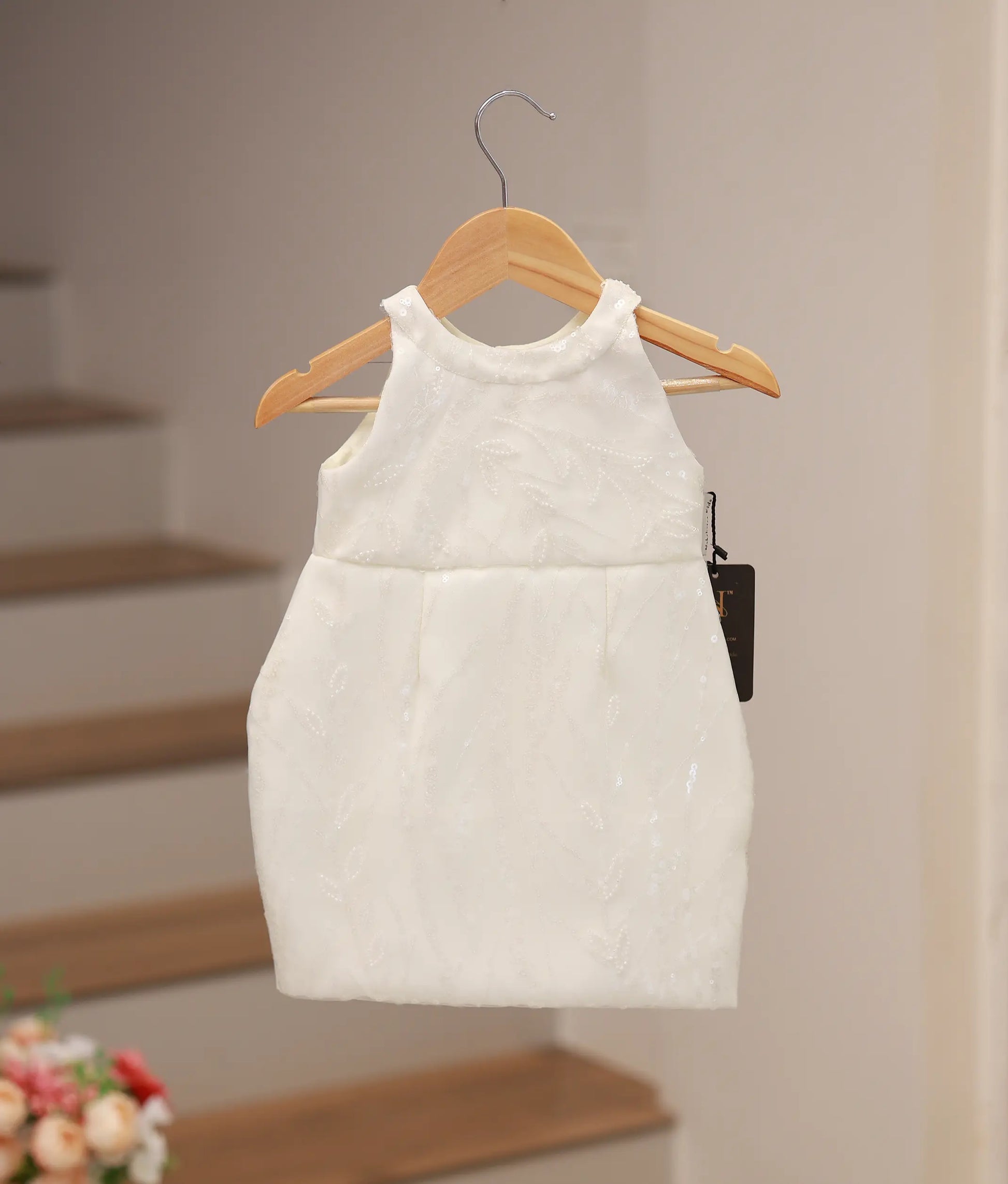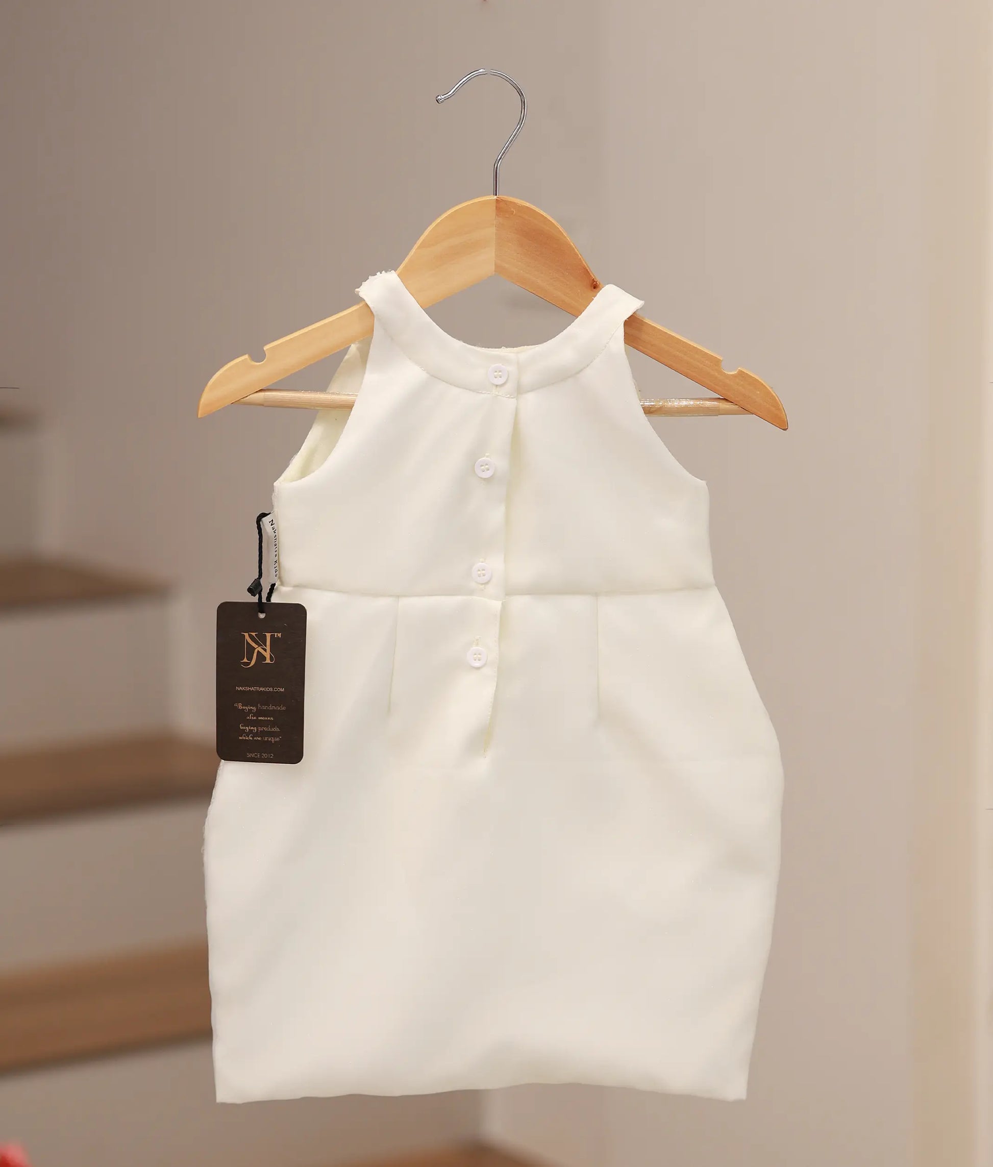 Off-White Work Material Fish Cut Frock For Baby Girl [Ready To Ship: 5456]