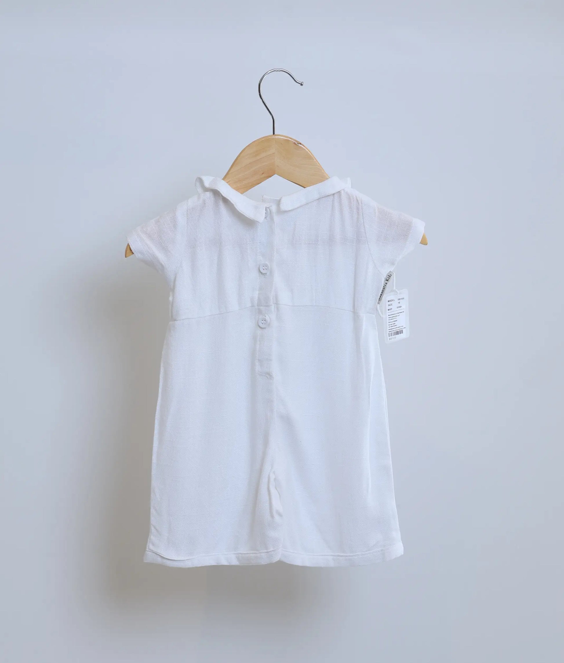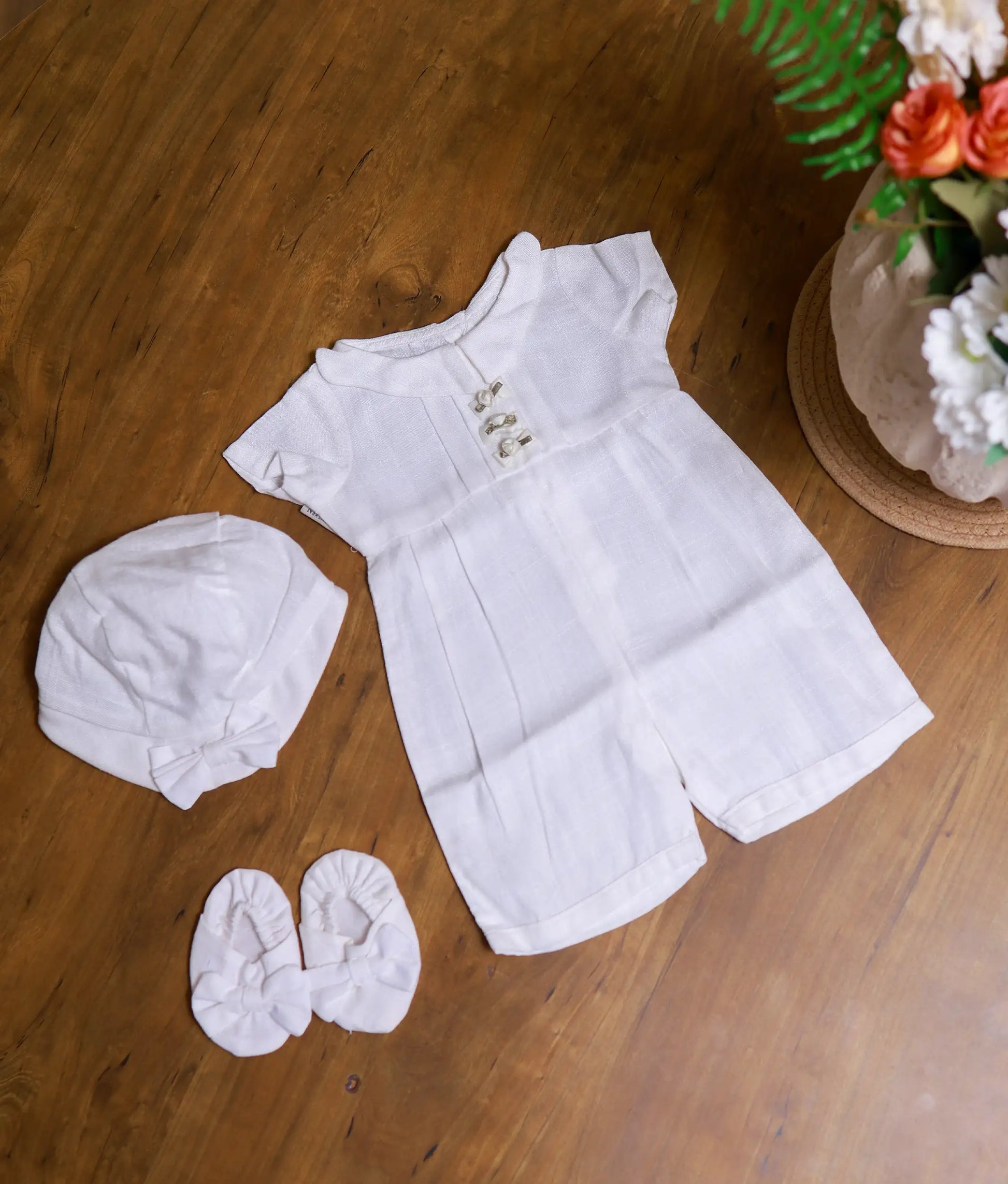 White Cotton Romper Baptism Dress For Baby Boy [Ready To Ship: BB105]