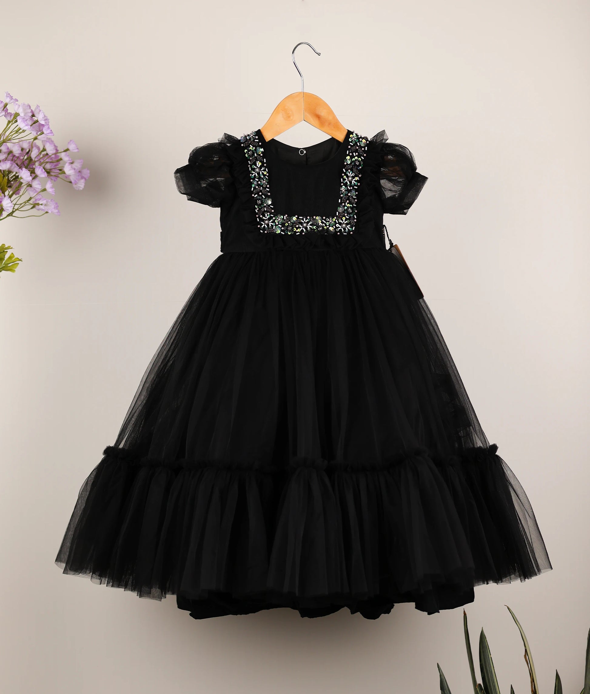 Black Tulle Net Handworked Birthday Frock For Baby Girl [Ready to ship: 2398]