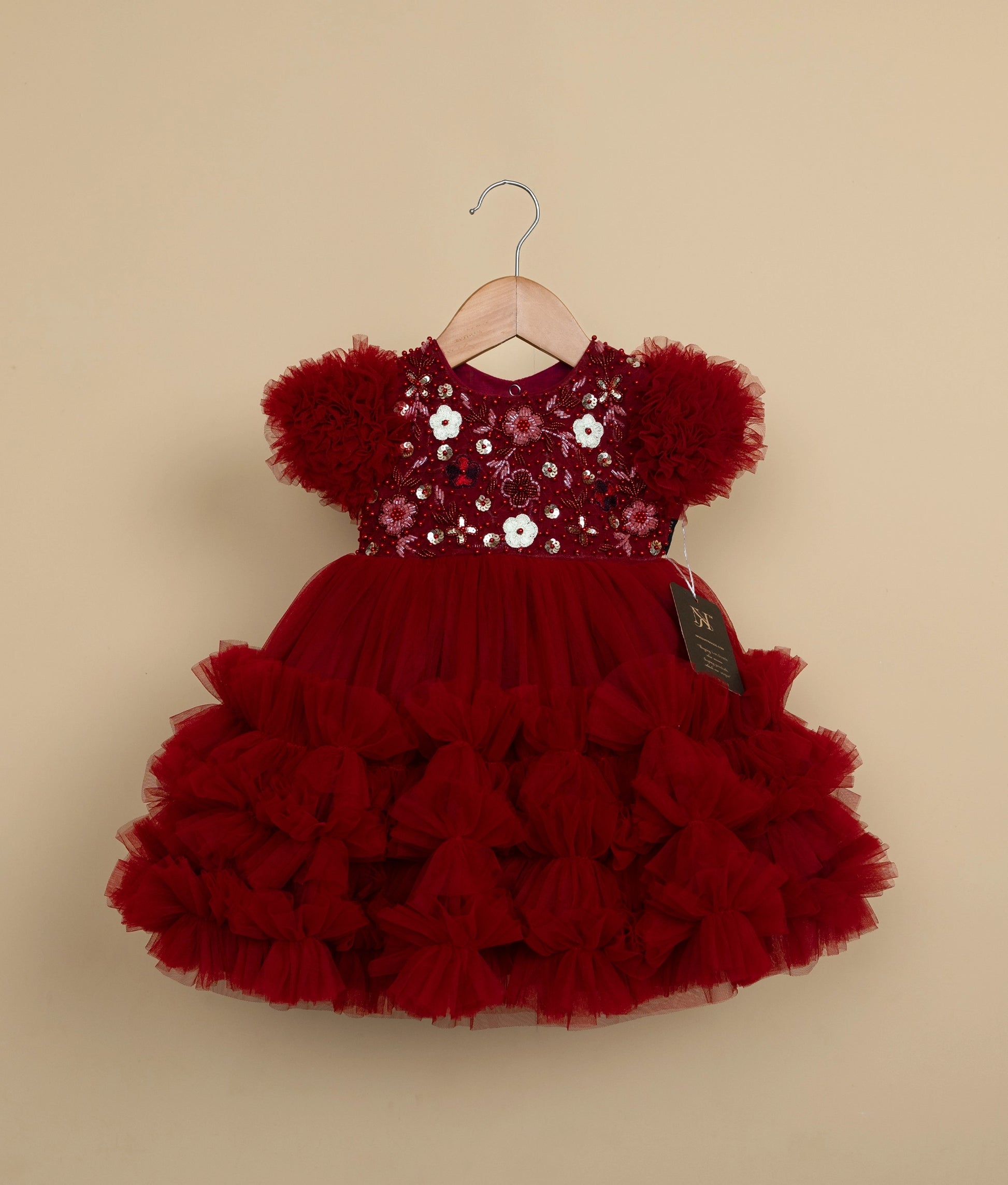 Maroon Tulle Net Handwork birthday frock For Baby Girl (Ready to Ship: 2335A]