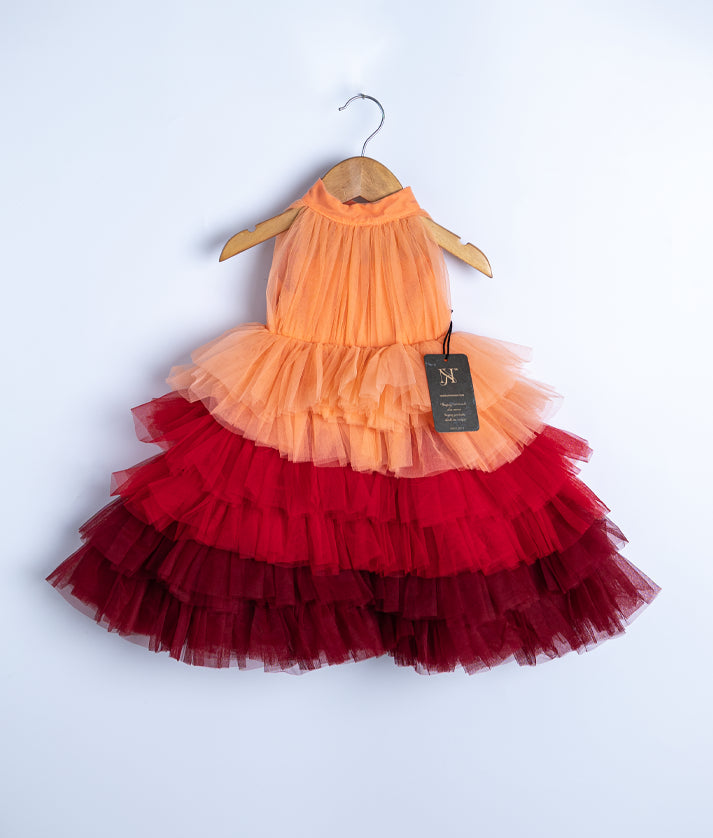 Multi Colour Tulle Net Step Birthday Frock For Baby Girl [Ready to Ship: 2166]