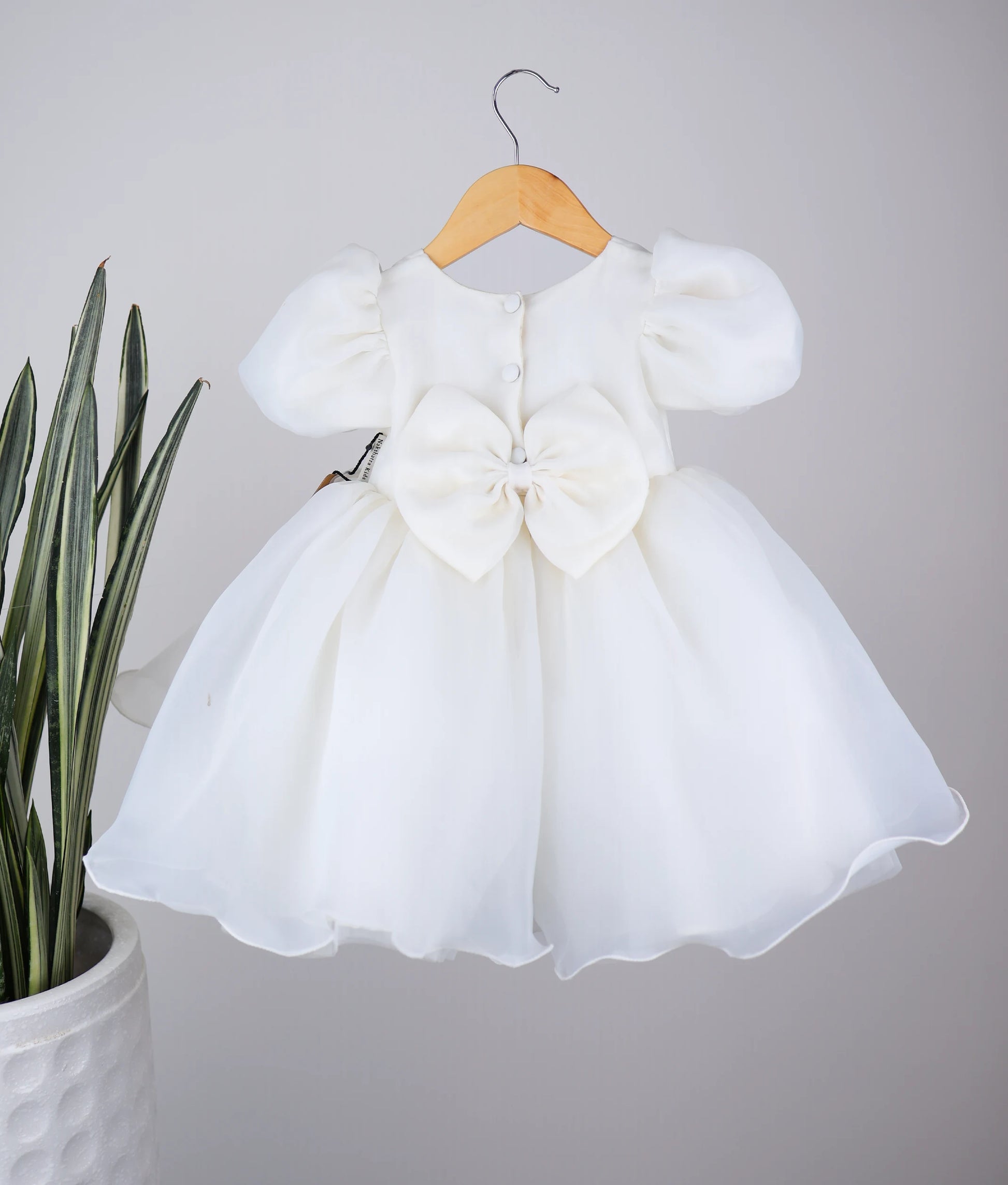 Offwhite Plain Organza Flower Theme Dress For Baby Girl [Pre-Order : 5268]