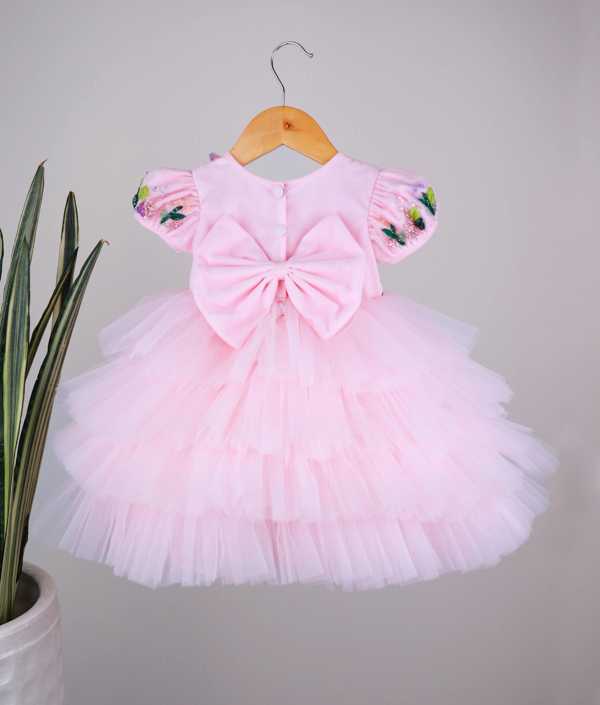 Powder Pink Tulle Net Handworked Butterfly Theme Step Birthday Dress For Baby Girl [Pre Order : 5278]