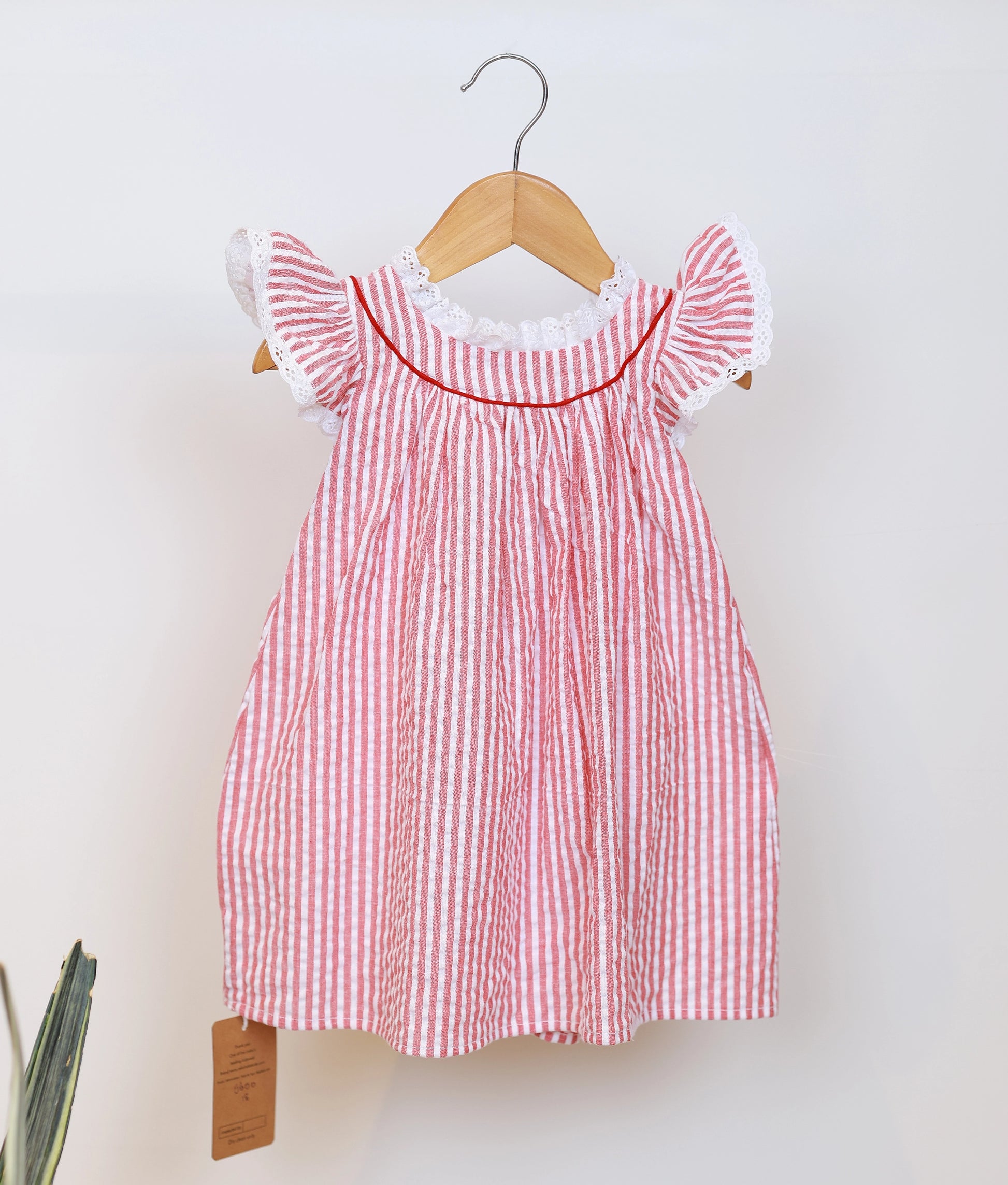 Red And White Striped Cotton Frock For Baby Girl [Ready To Ship: 5600]