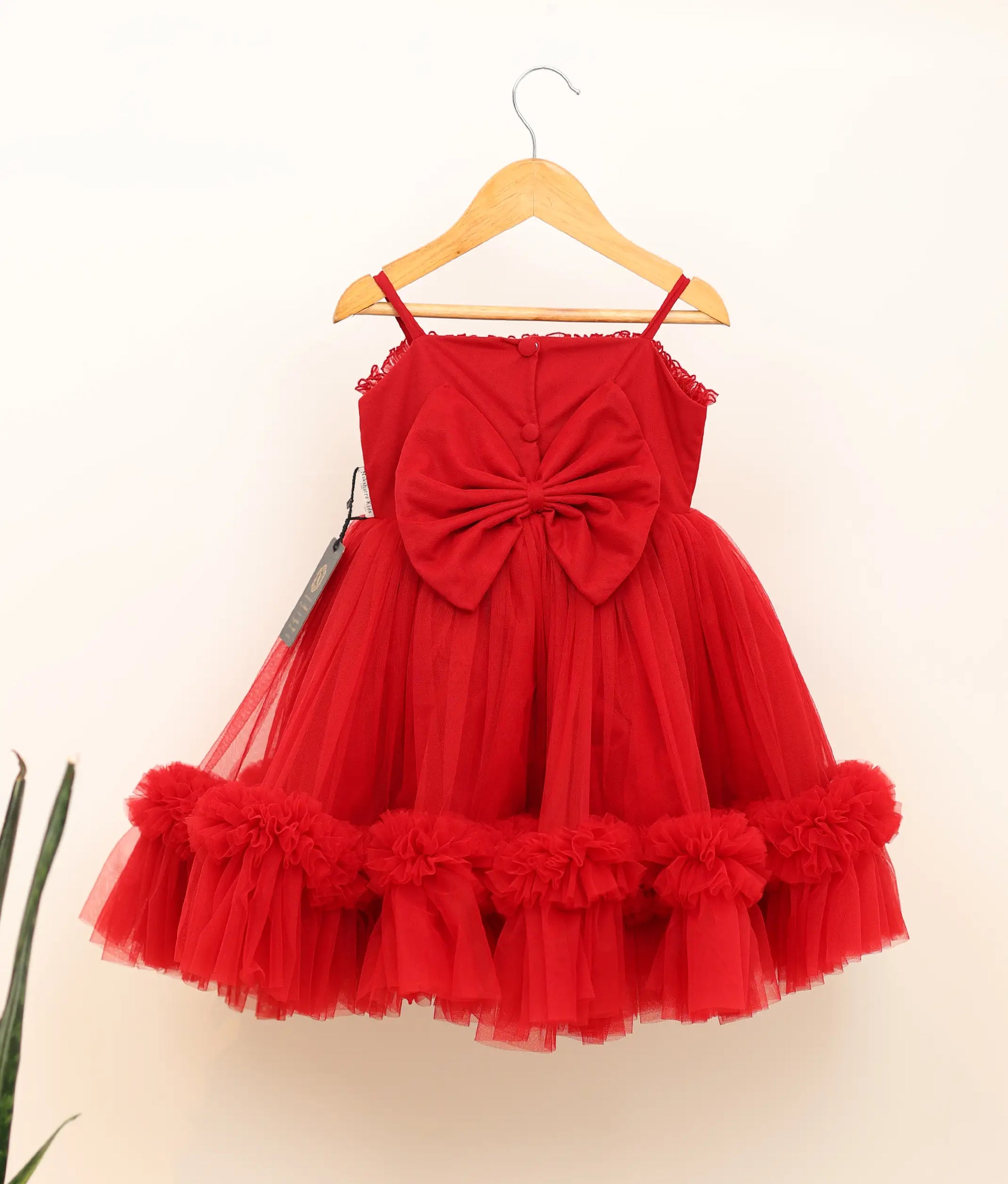 Red Tulle Net Handworked Birthday Frock For Baby Girl [Pre-Order: 5534]