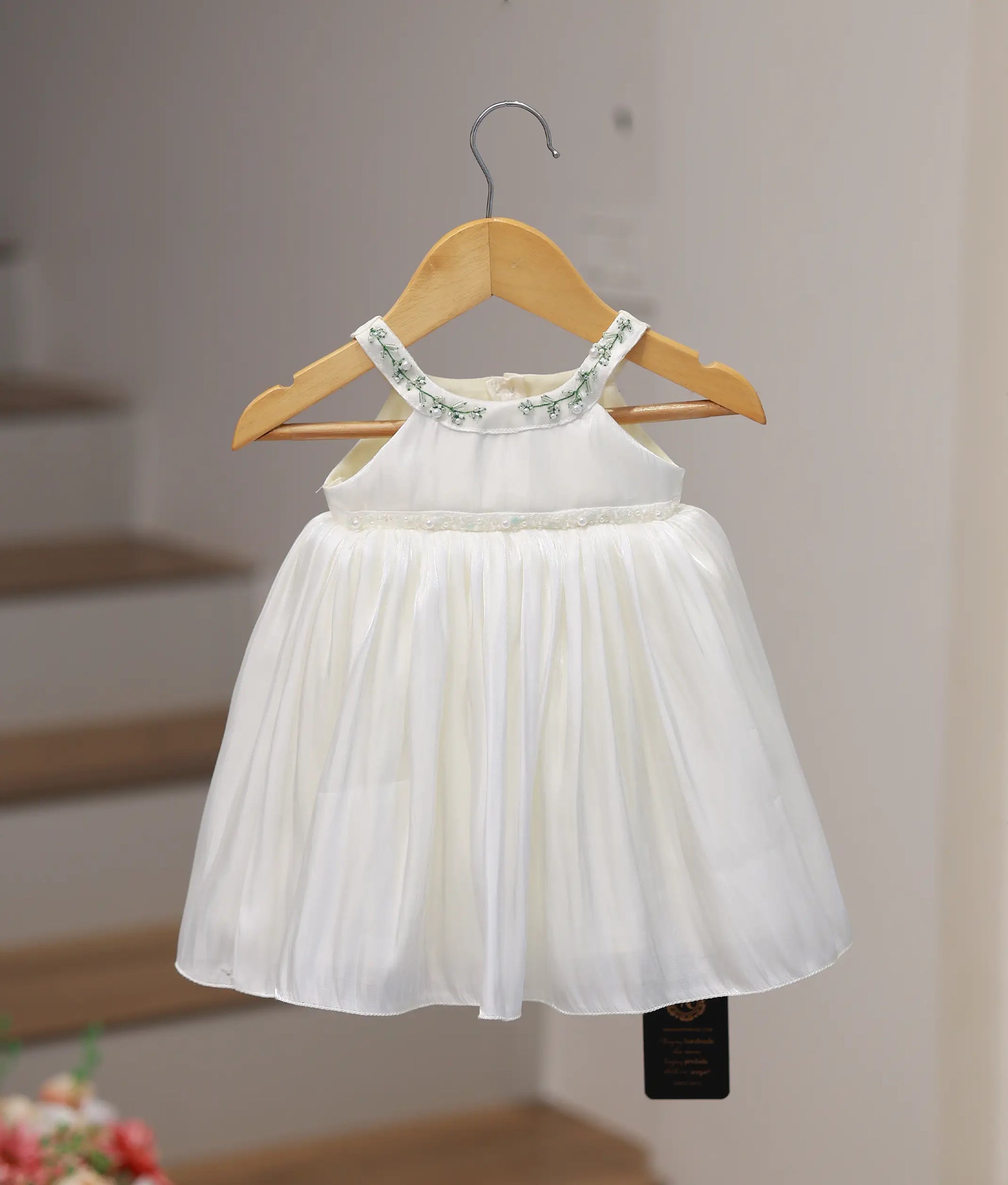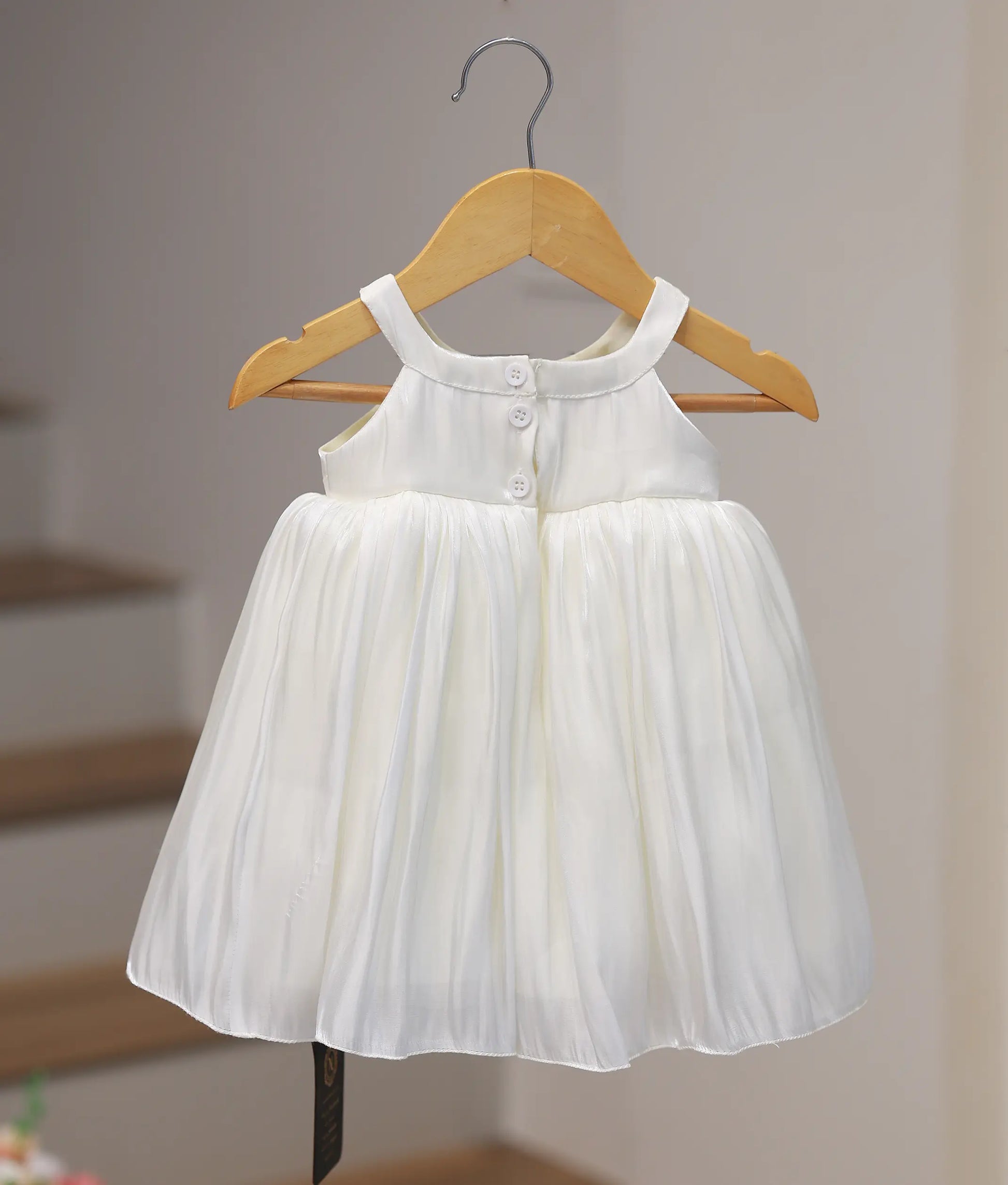 off-white Lacer Organza Handworked Baptism Frock For Baby Girl [Ready To Ship: 5529]