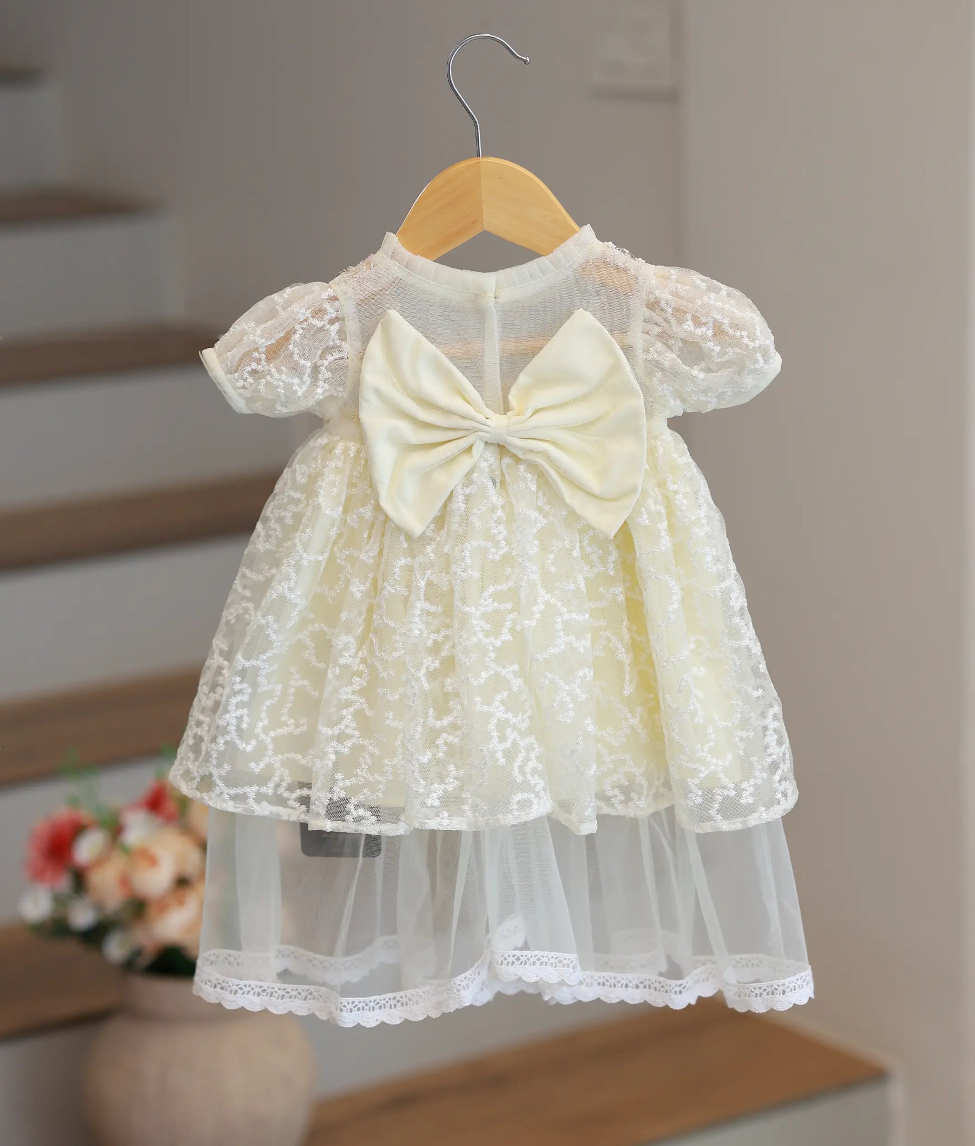 Offwhite Tulle Net Handworked Baptism Frock For Baby Girl [Ready to ship :7640]