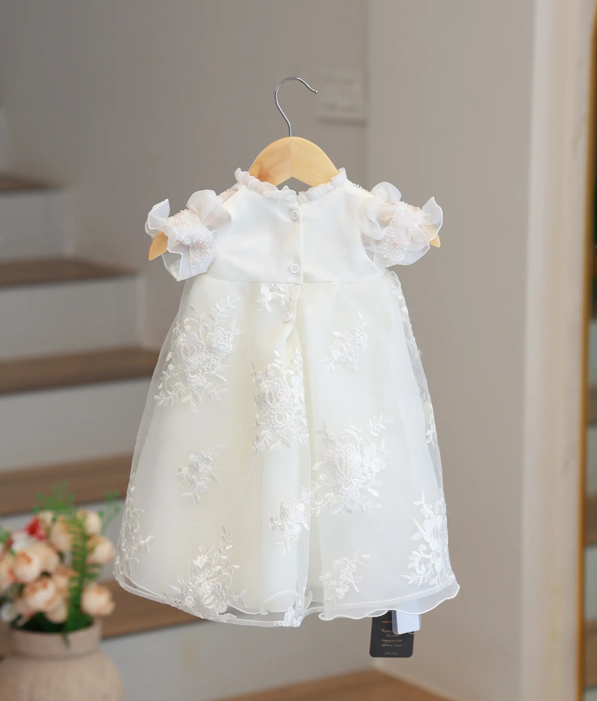 Off-White Handworked  Plain Organza Baptism Gown For Baby Girl [Ready To Ship: 2746]