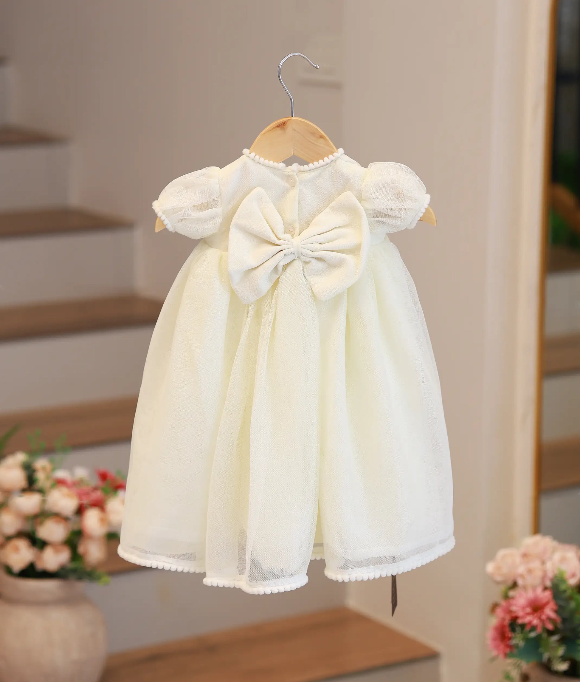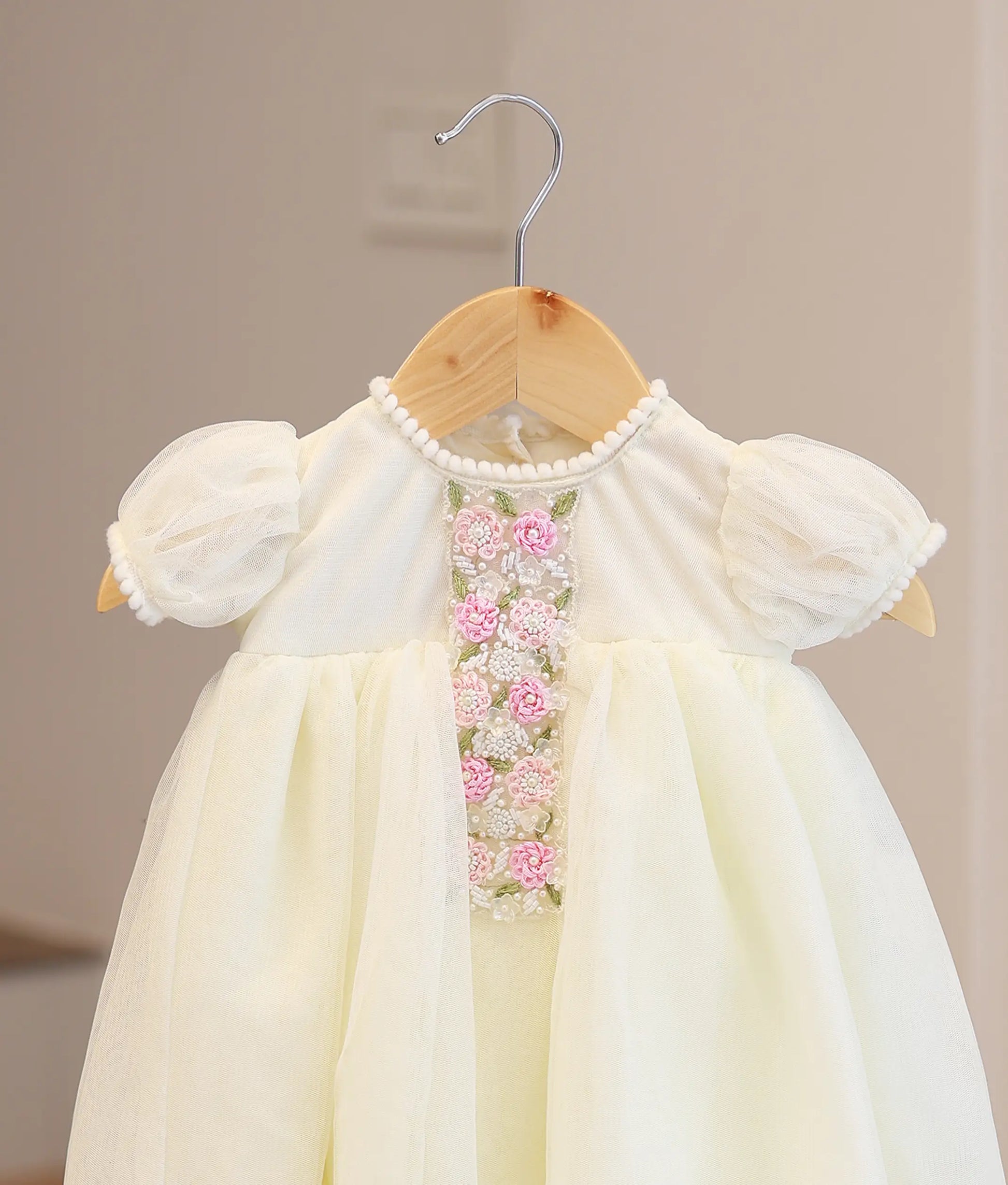 Offwhite Tulle Net Handworked Baptism Frock For Baby Girl [Ready To Ship : 2833]