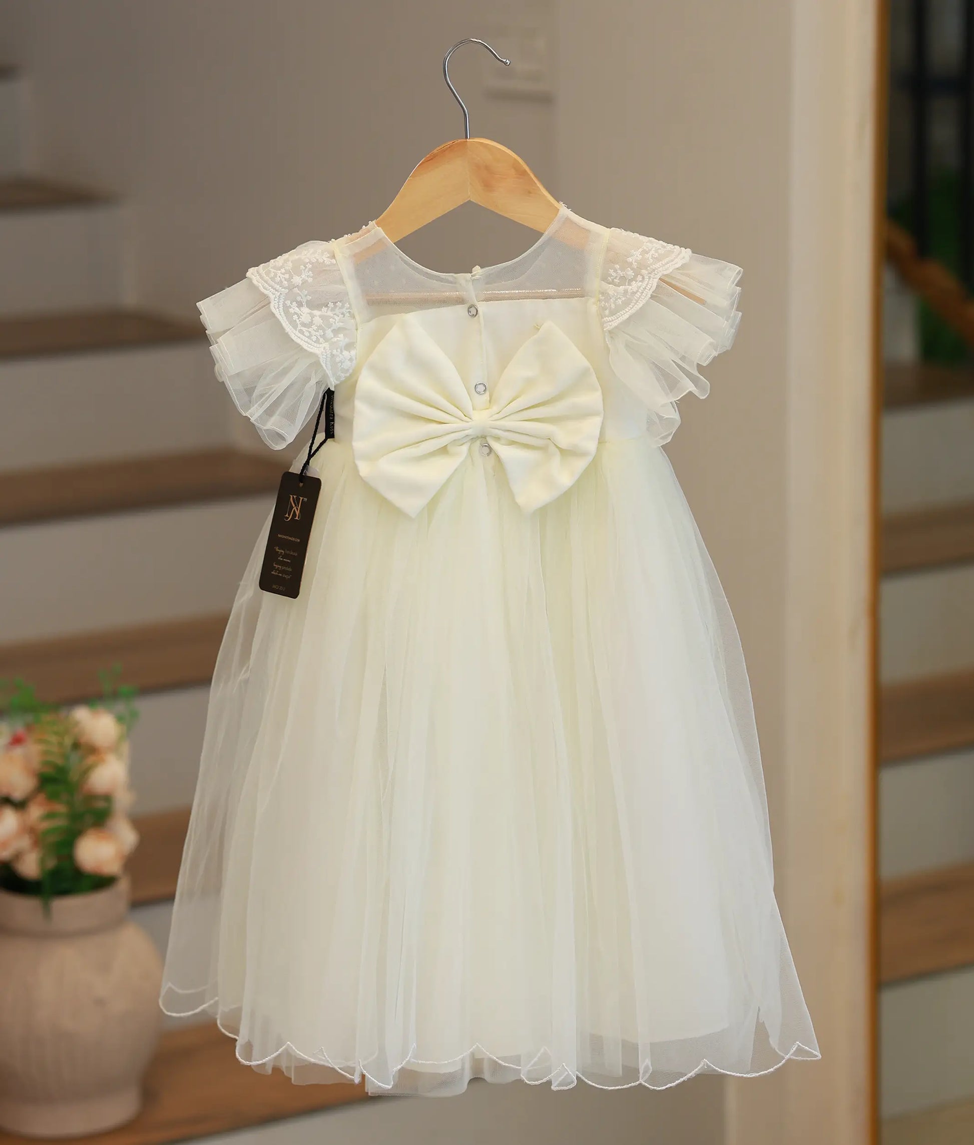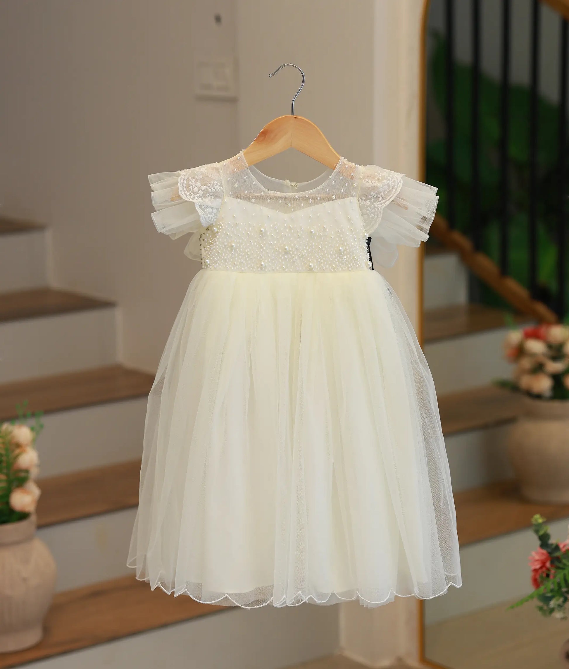 Offwhite Tulle Net Handworked Baptism Gown For Baby Girl [Ready to ship 2004]