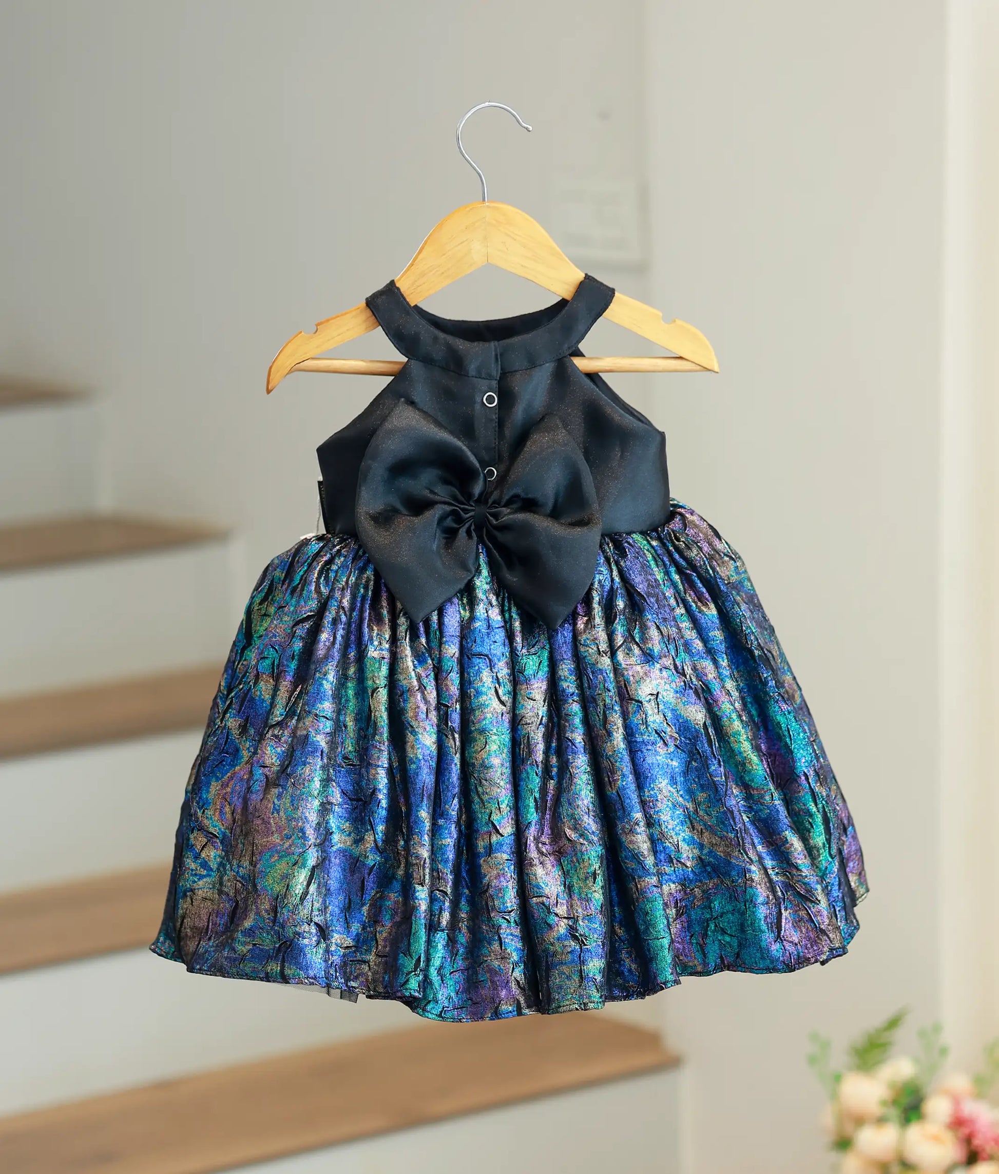 Black And Blue Shade Shimmer Crush Organza Frock For Baby Girl [Ready To Ship: 5627]