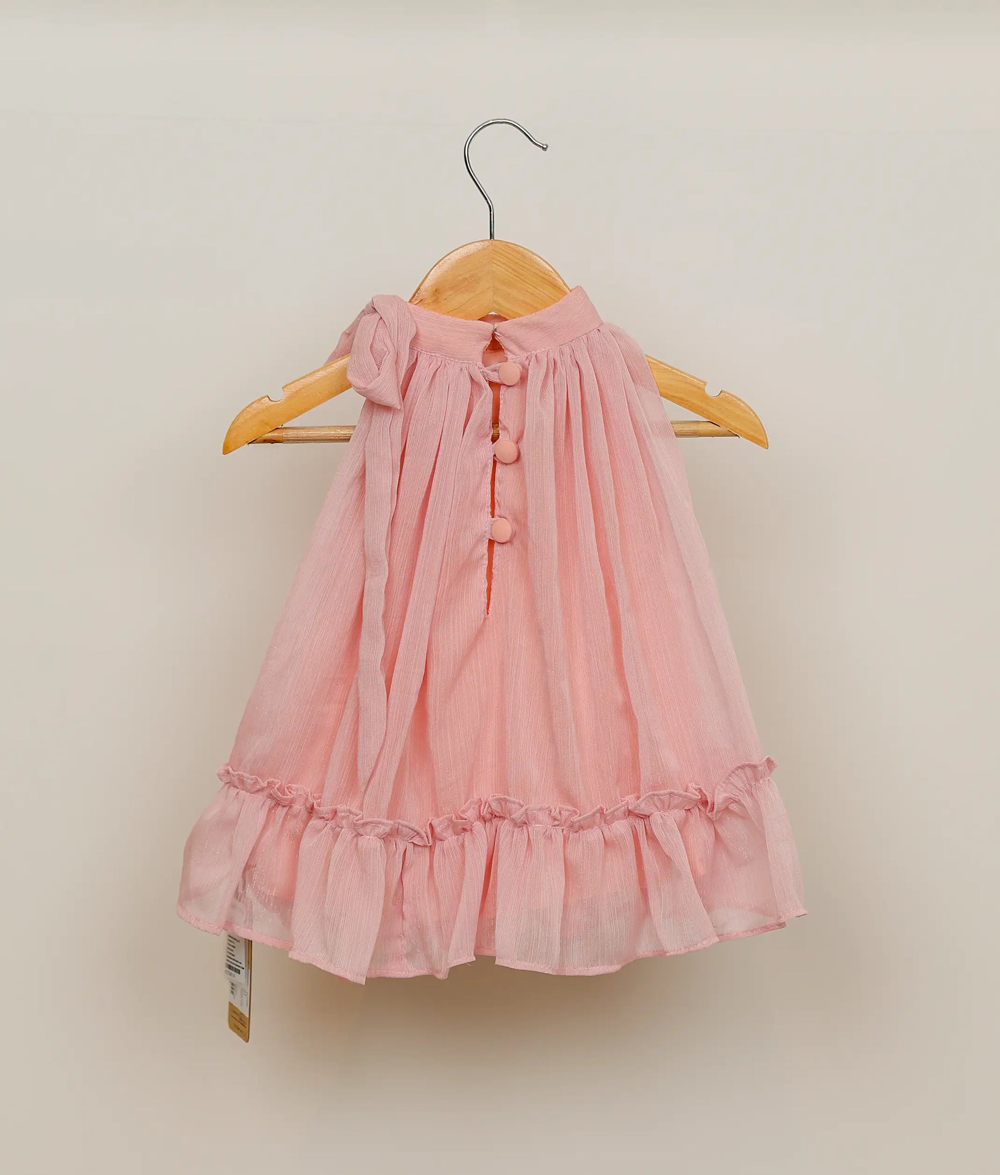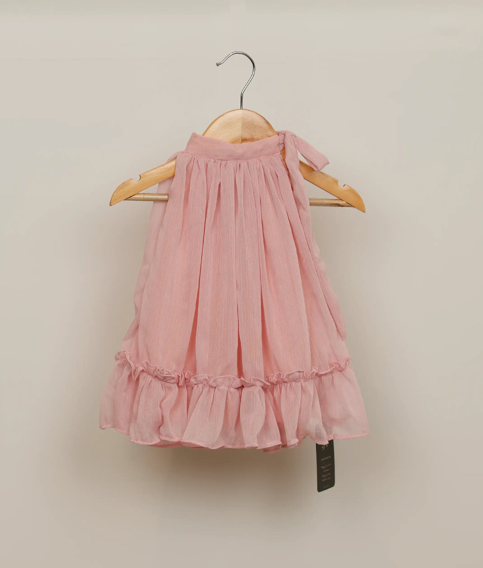 Peach Shimmer Georgette Halter Neck FRock For Baby Girl [Ready To Ship: 2596]