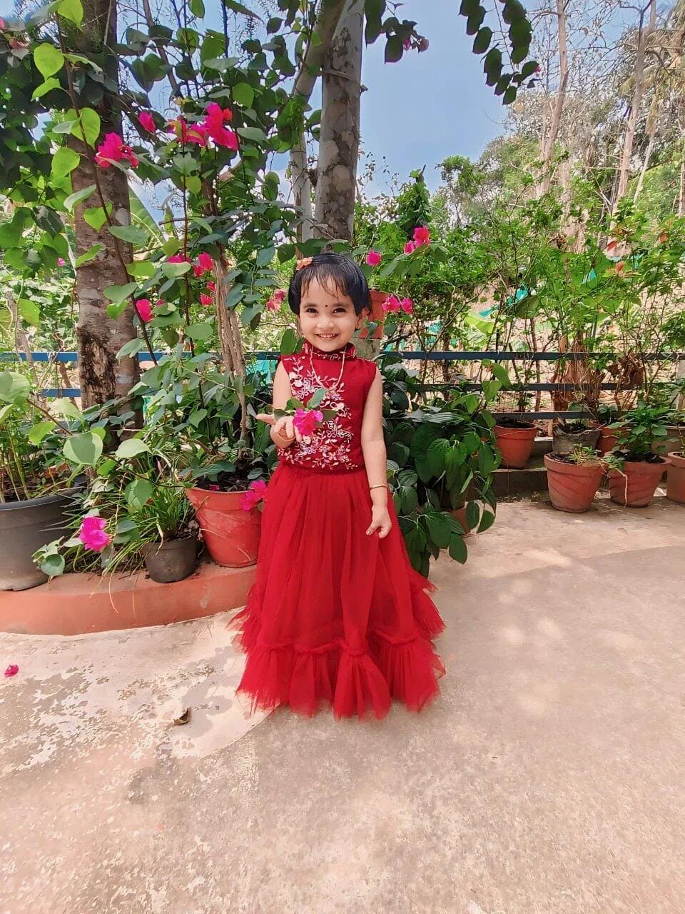 Hot Pink Tulle Net Handworked Skirt And Top For Baby Girl [Ready to ship:2203]