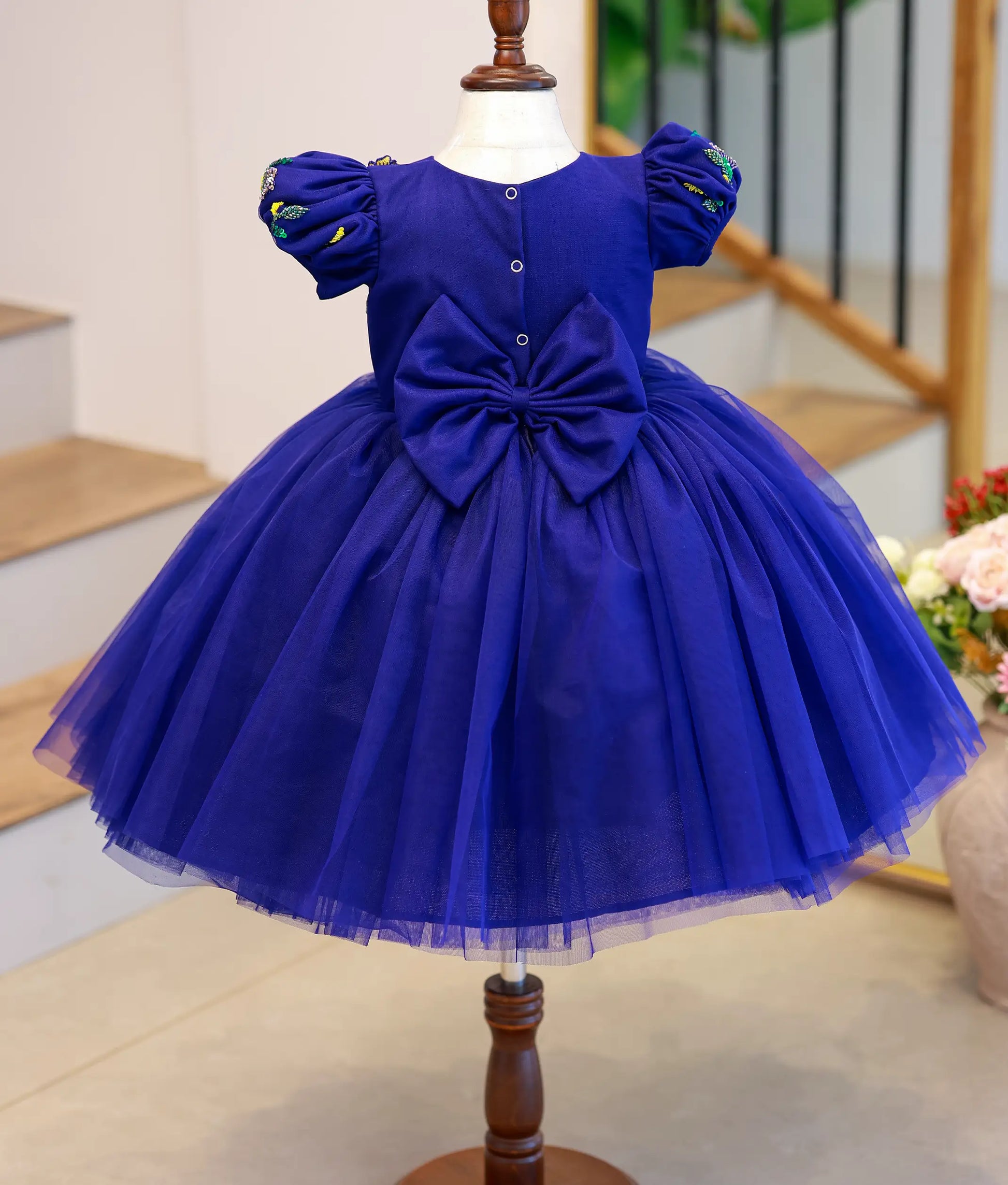 Royal Blue Handworked Butterfly Theme Dress For Baby Girl [Pre order: 5632]