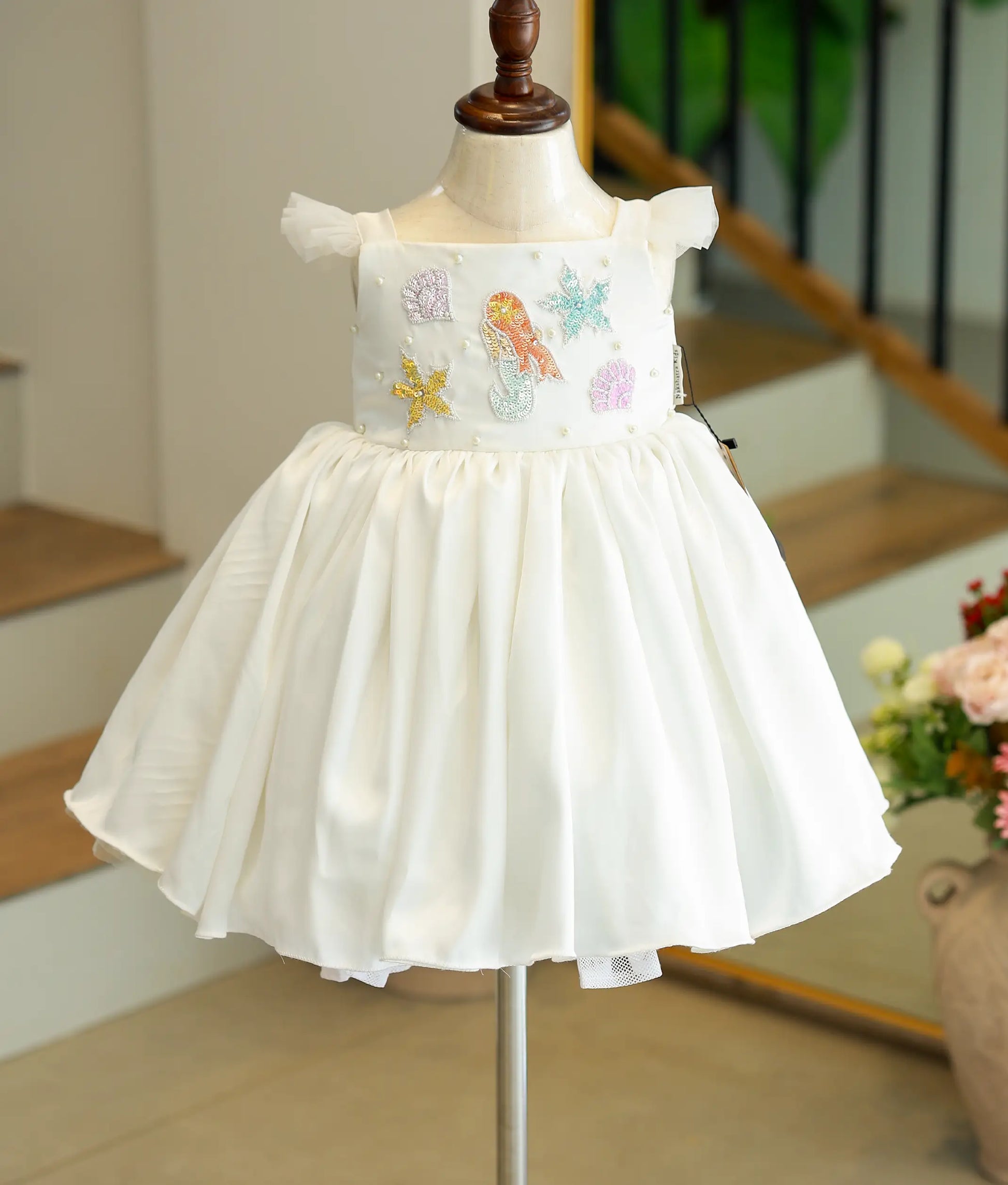 White Double Side Satin Mermaid Theme Dress For Baby Girl [Ready to ship:2890]