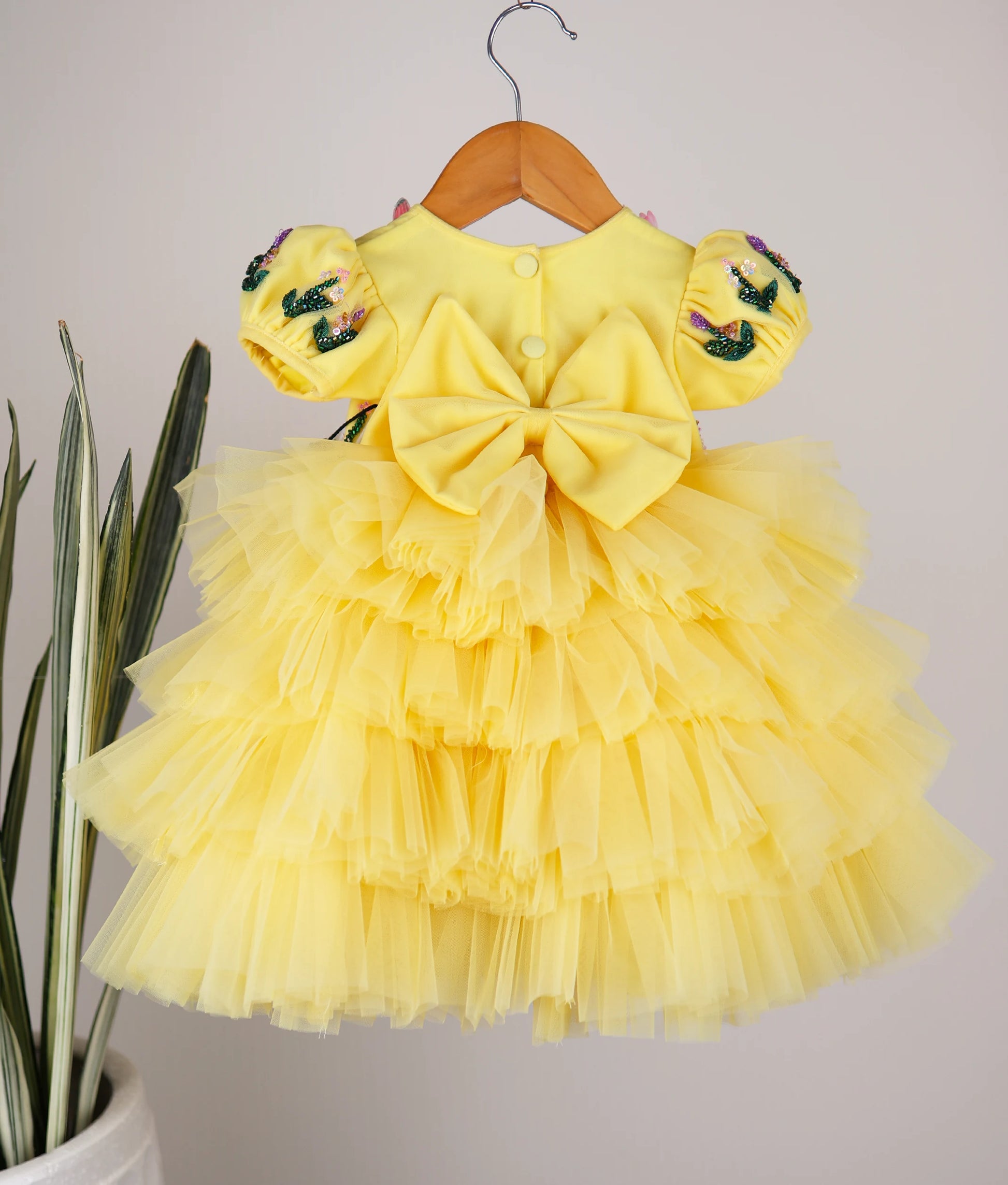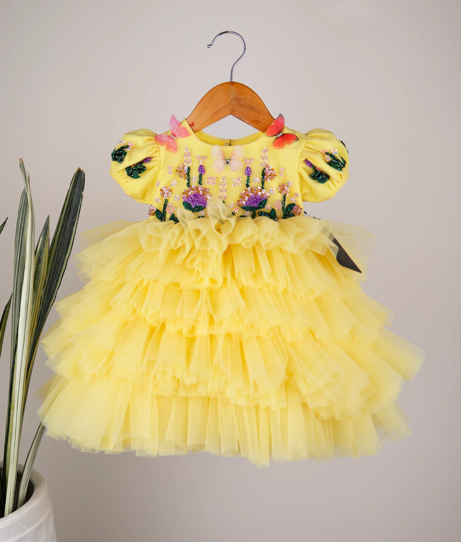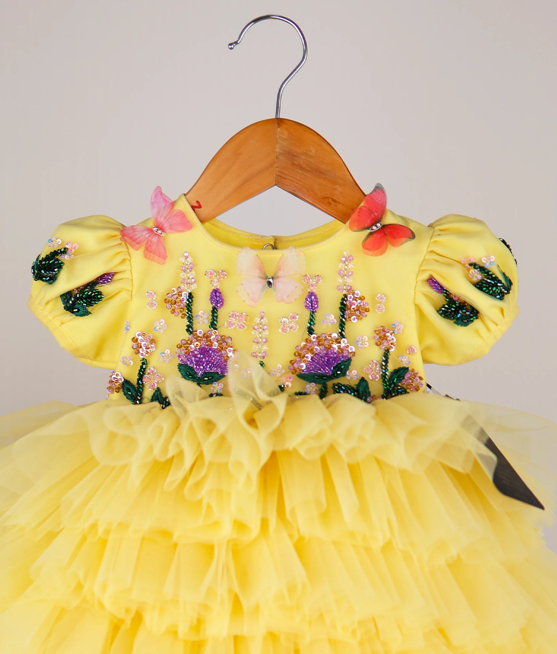 Yellow Handwork Butterfly Theme Step Birthday Dress For Baby Girl [Pre Order :5147]