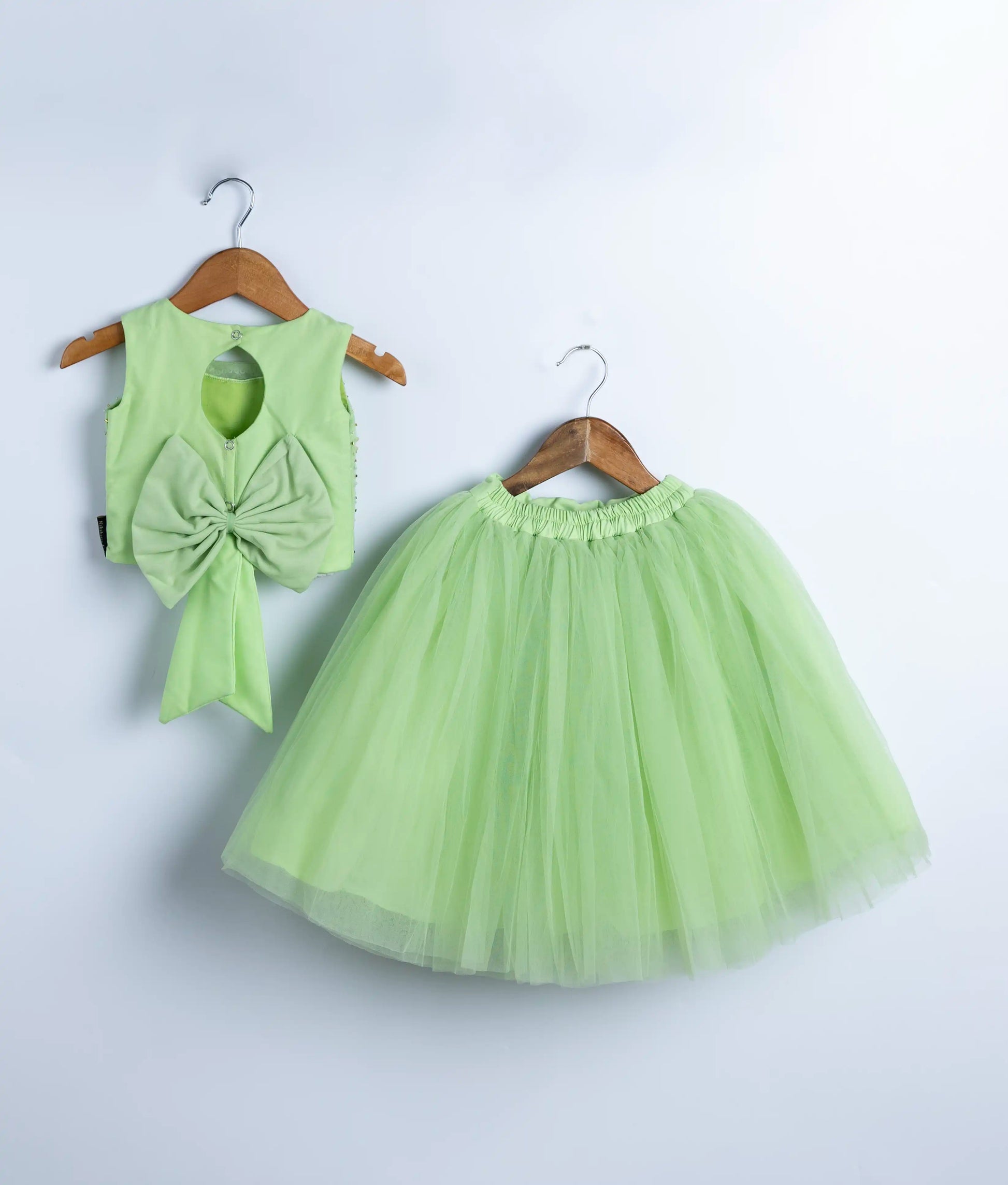 Pastel Green Handwork Crop Top with Full Length Skirt For Baby Girl Ready to ship :7576]