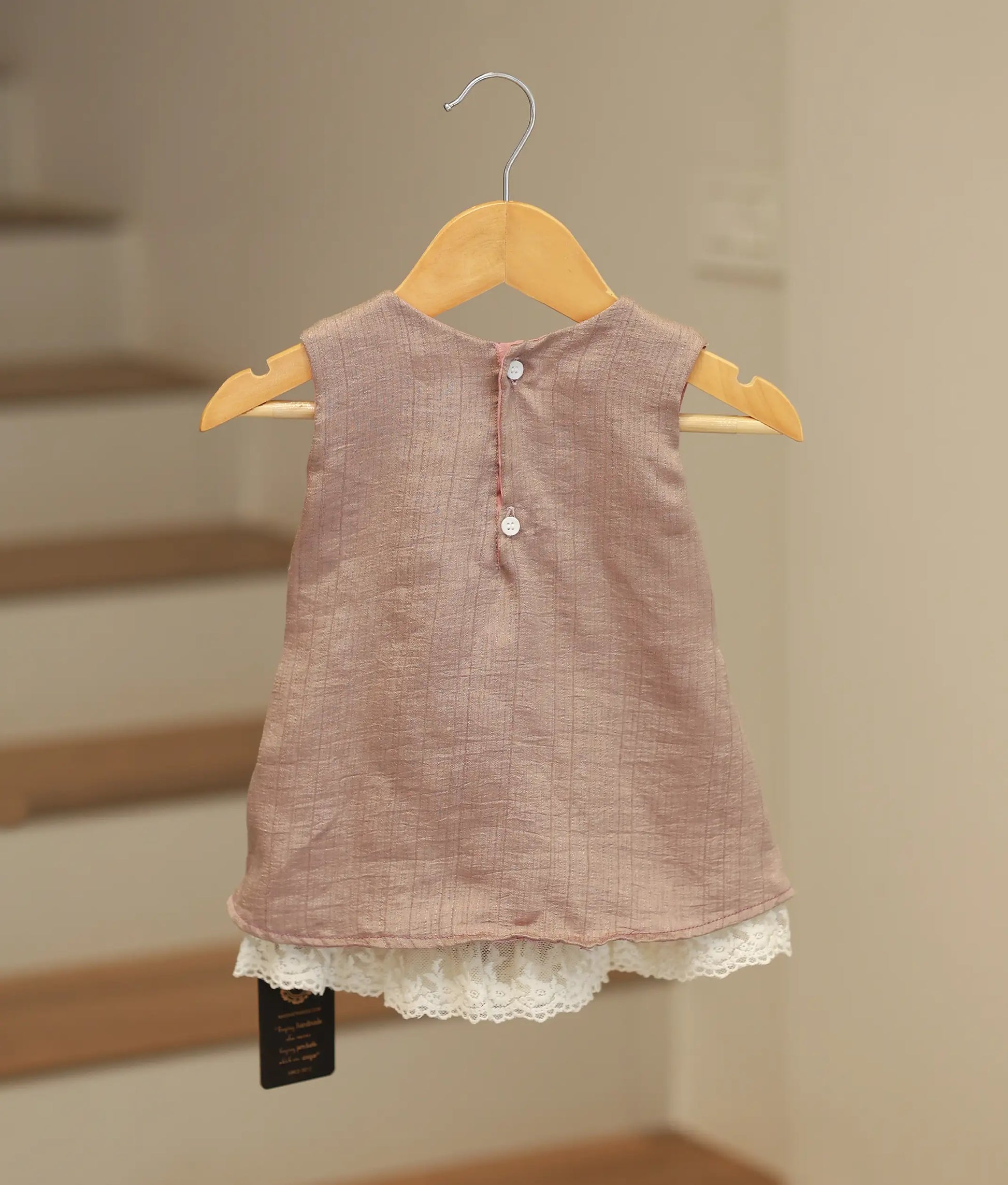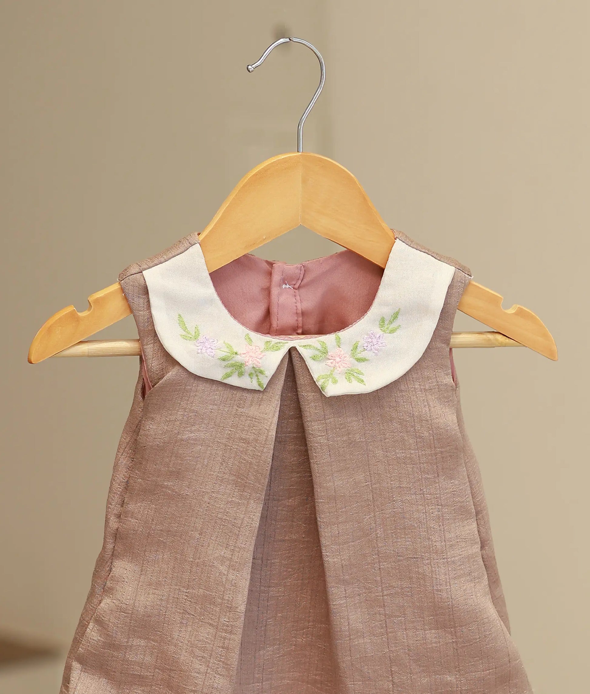 Beige Naisha Silk Embroidered A-Line Frock For Baby Girl [Ready To Ship: 5638]