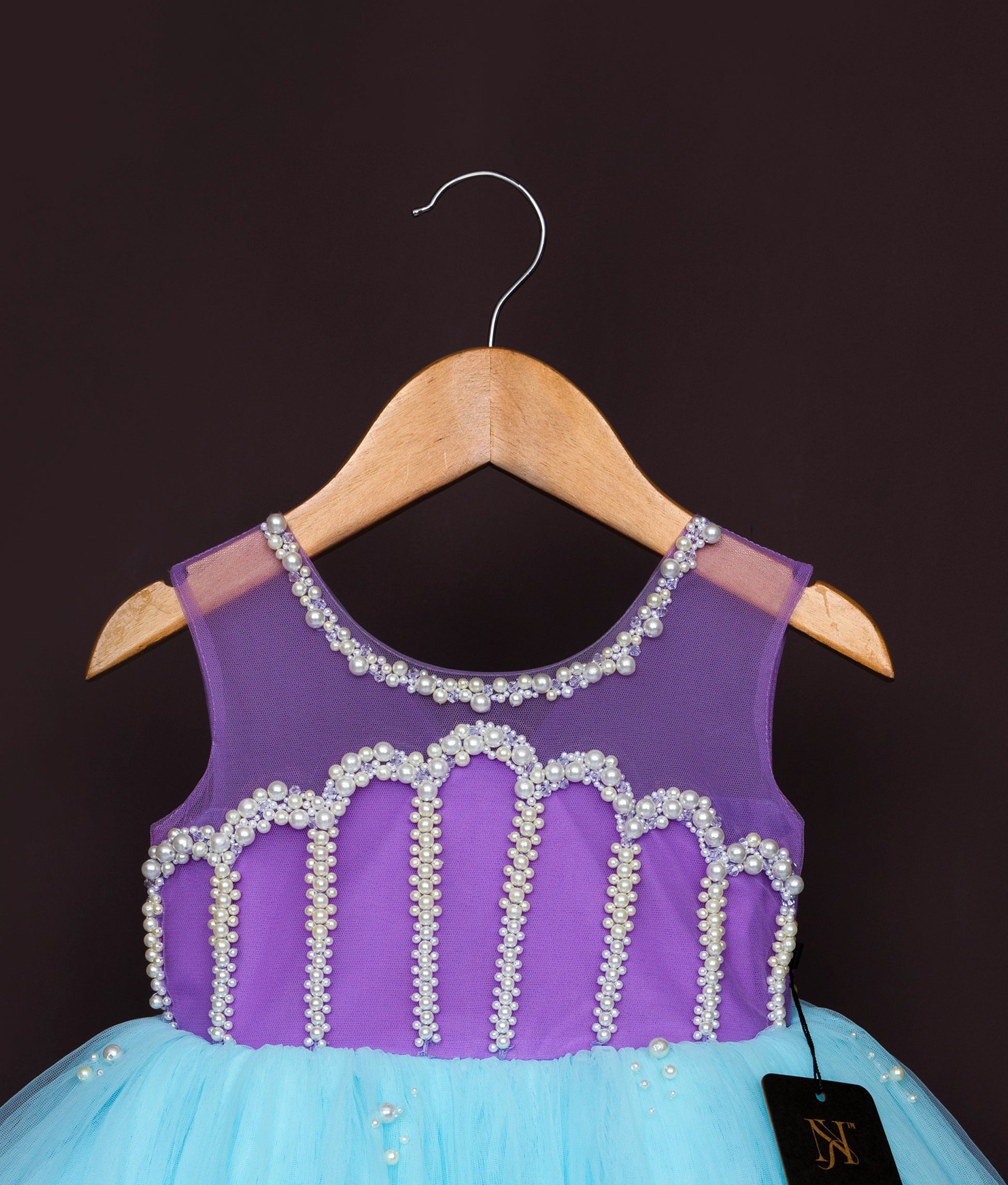 Multicolour Tulle Net Mermaid Theme Birthday Frock For Baby Girl [Pre order:5190]