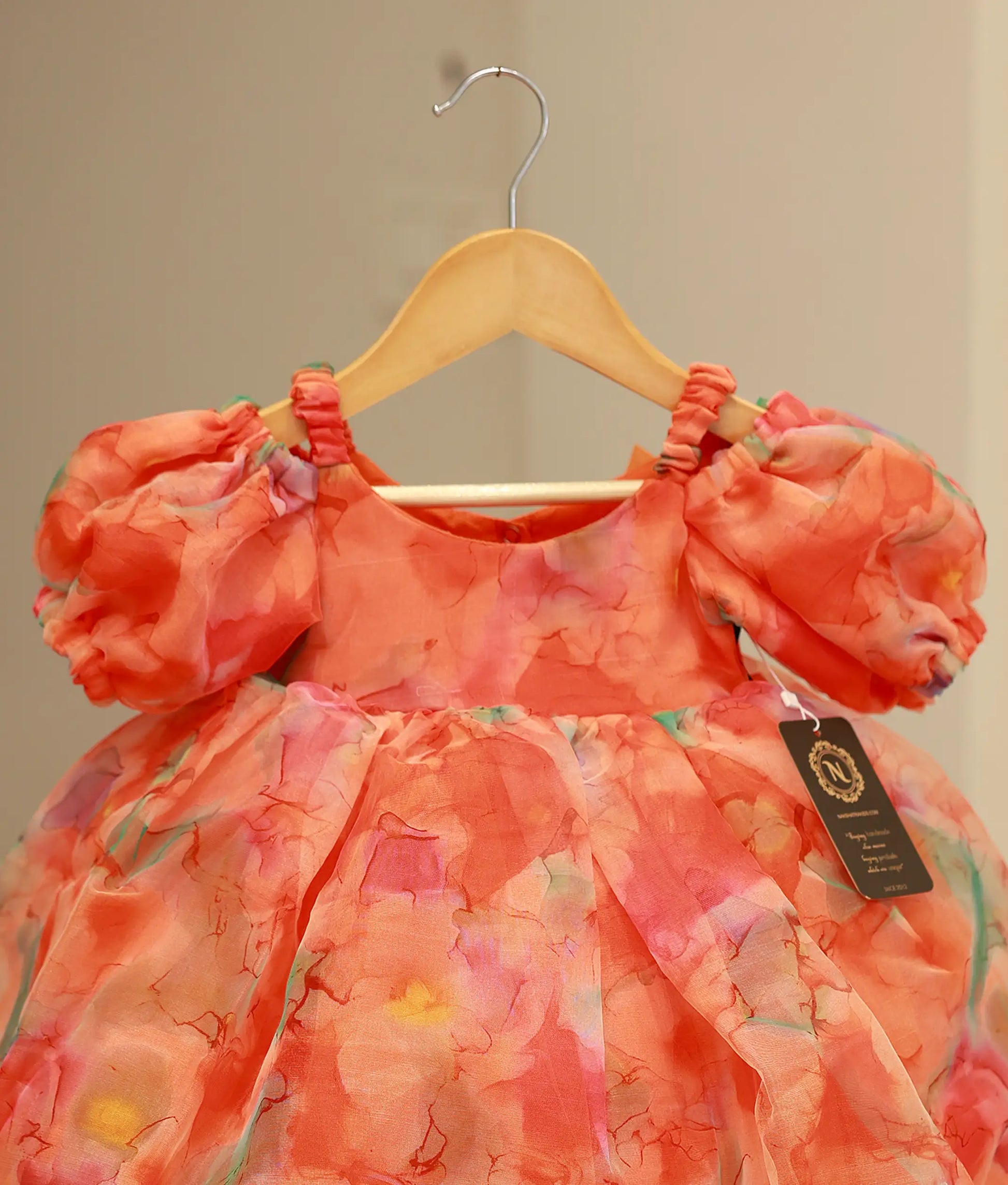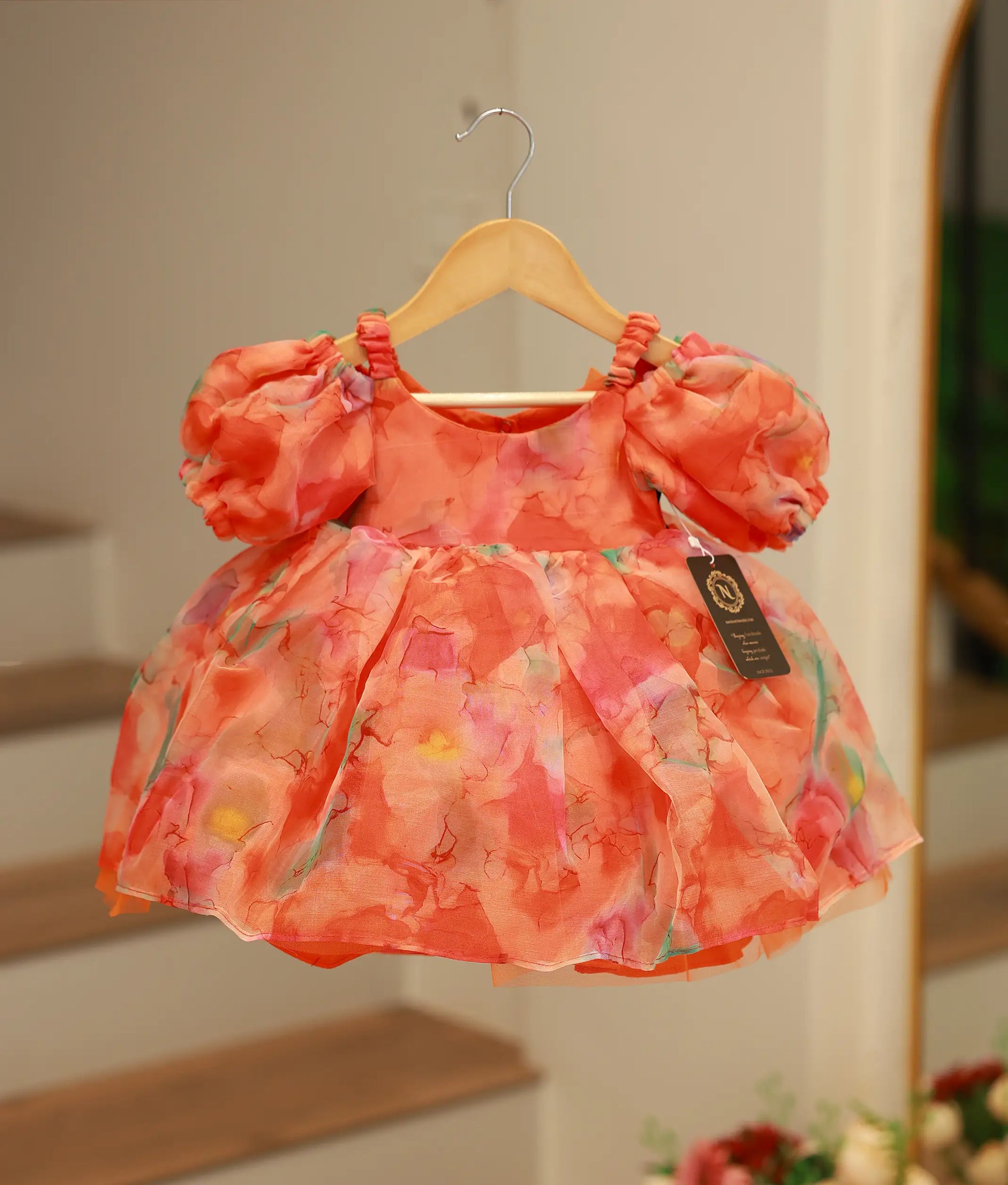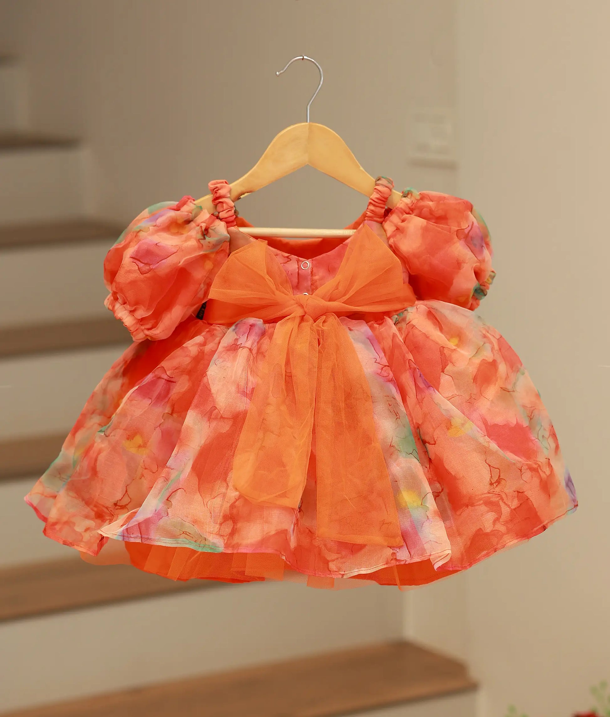 Orange Printed Organza Casual Frock For Baby Girl [Ready To Ship: 2033]