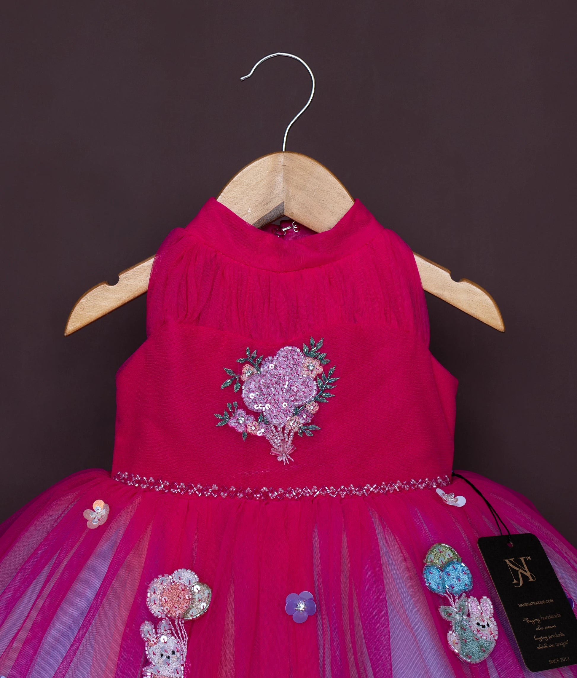 Rani Pink Tulle Net Rainbow Theme Birthday Frock For Baby Girl [Pre order:5093]