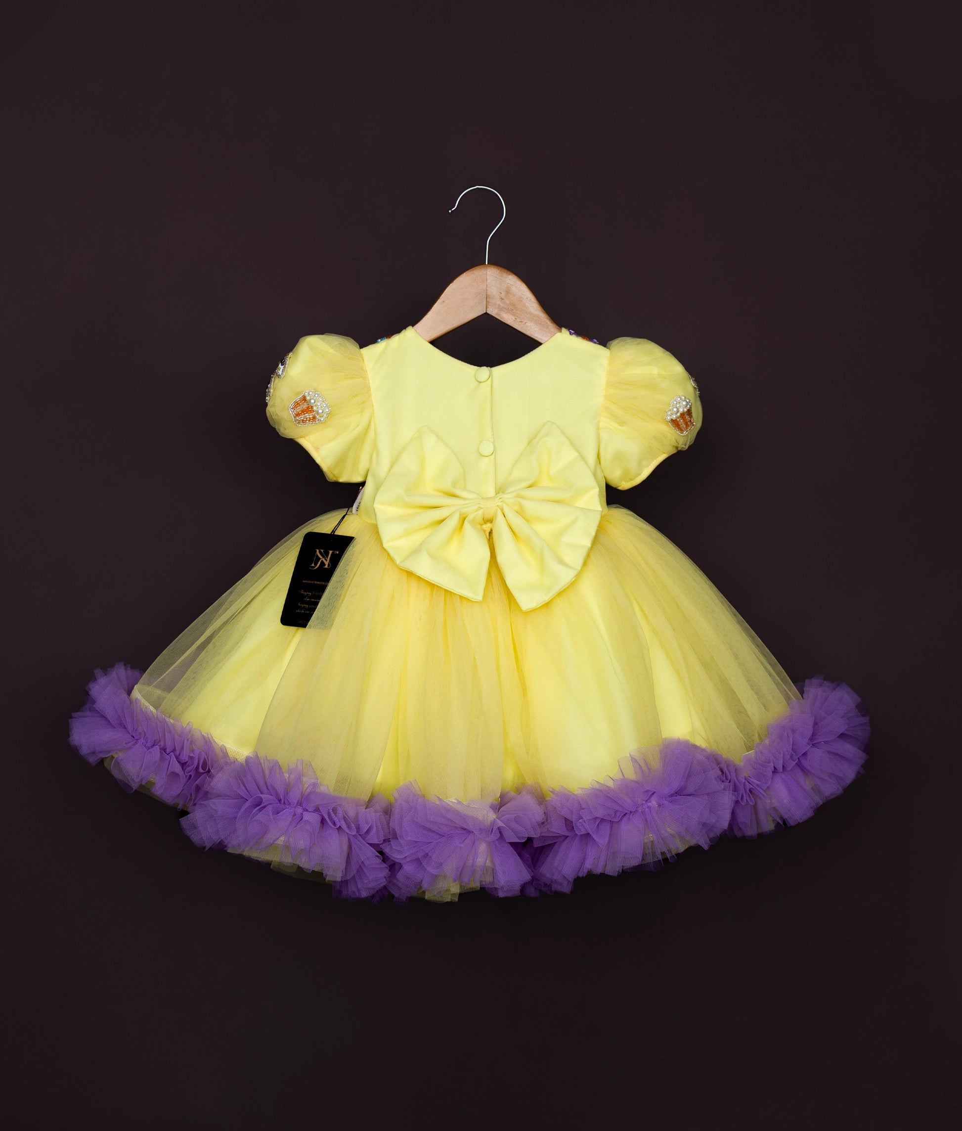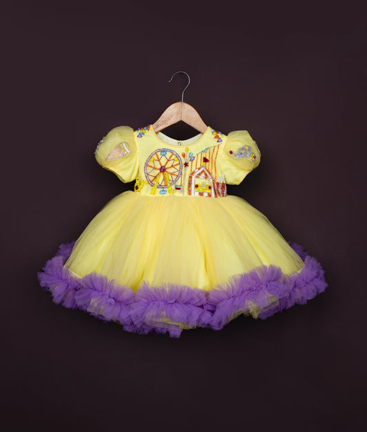 Yellow Tulle Net Handworked Carnival Theme Dress For Baby girl [Pre order: 5240]