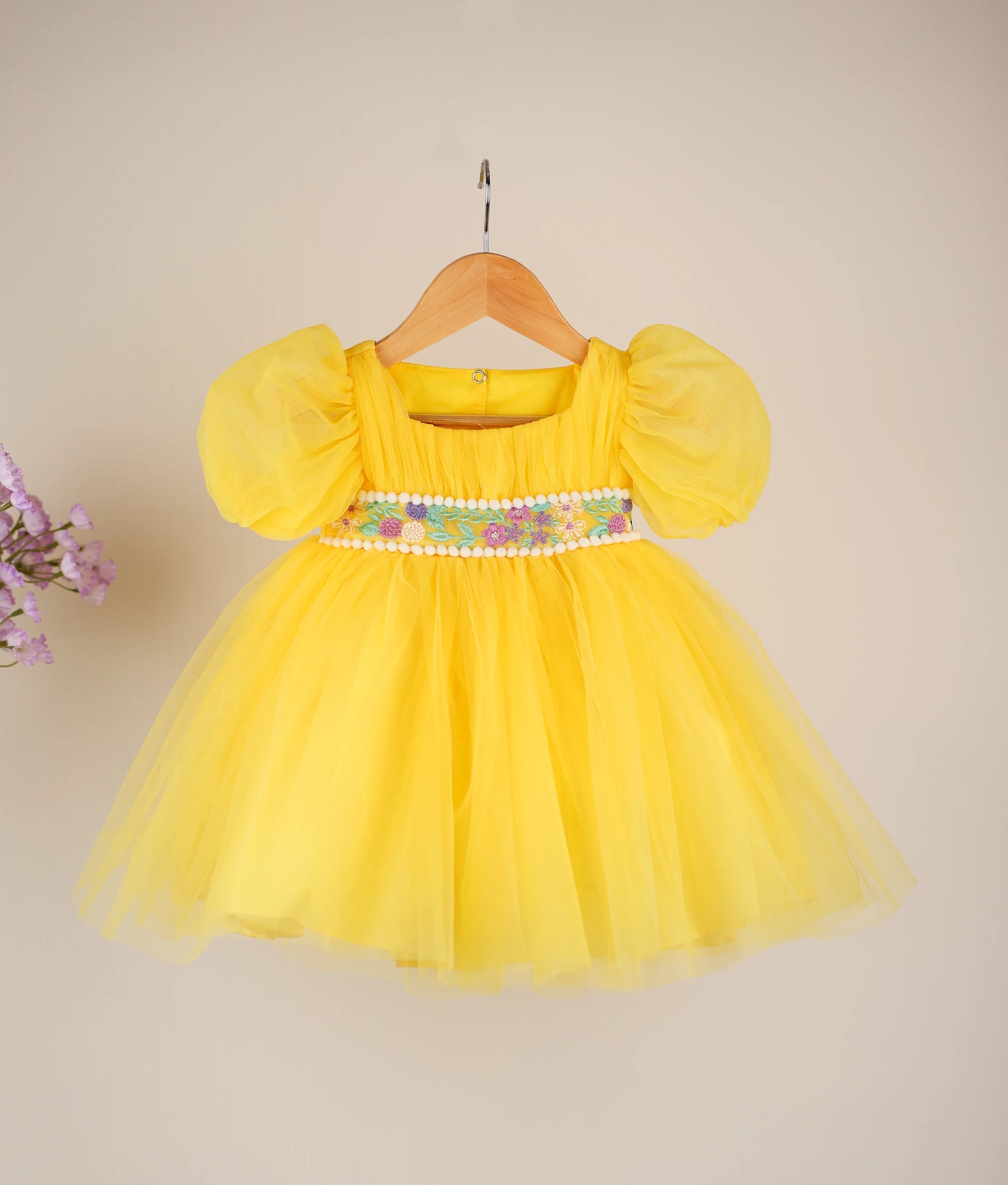 Yellow Tulle Net Embroidery casual Frock For Baby Girl [Ready to ship :2575]